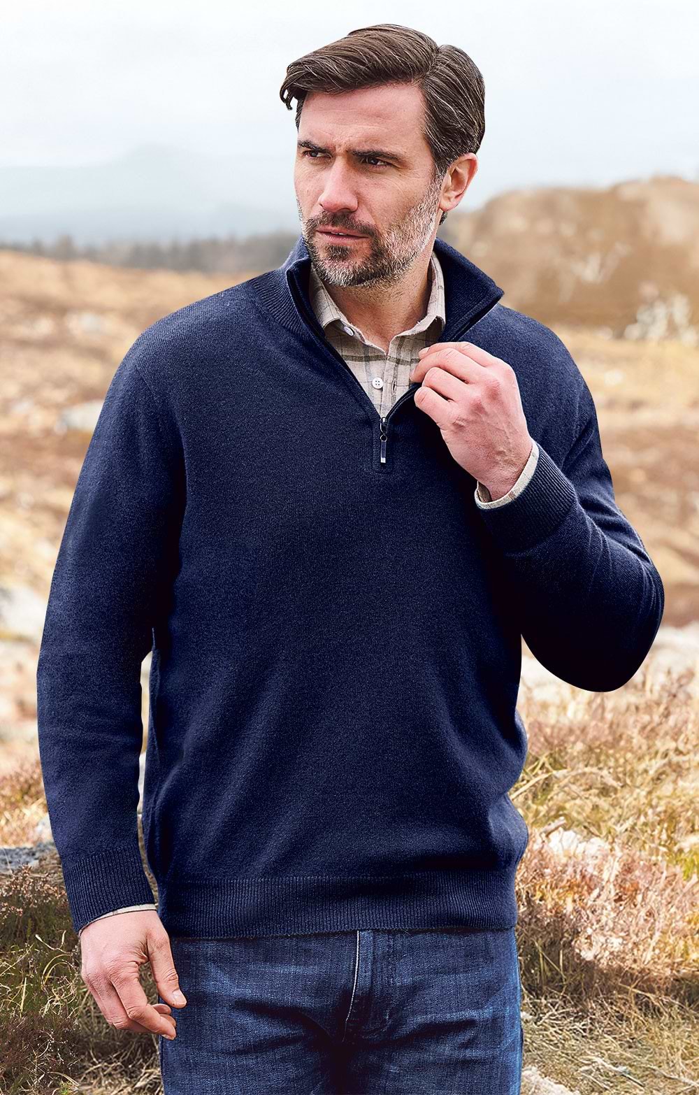 Cashmere half-zip jumperFine-gauge knitRibbed cuffsRibbed hemRibbed collarTailored yet relaxed fitDesigned by The House of BruarRegardless of whether you're heading to the office or enjoying a weekend getaway, this men's cashmere T-zip sweater delivers a polished, versatile look that works for any occasion. Lightweight enough for autumn and spring yet warm enough for winter, it's a sophisticated layer that transitions seamlessly through the seasons, offering both style and comfort in every wear.