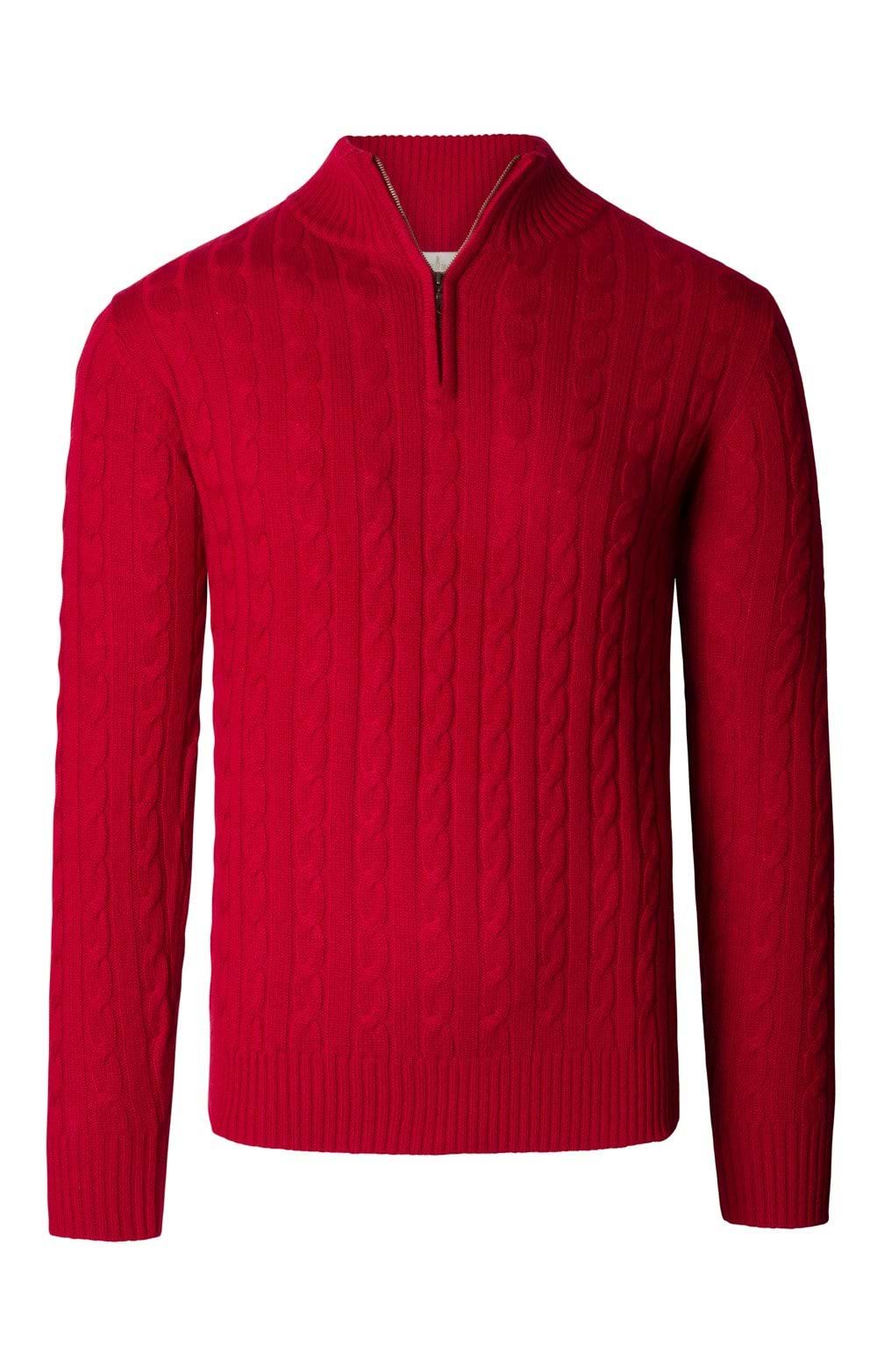 T-zip jumper in pure cashmereCable-knit styleSemi-fittedRibbing to neck, cuffs and hemDesigned by The House of BruarThis luxurious T-zip will look great over a tattersall shirt and your favourite moleskin jeans, with the option of adding a nautical blazer or country tweed jacket for sophisticated smart-casual events. Alternatively, just team it with your favourite jeans to add some cashmere luxury to your off-duty weekend look.