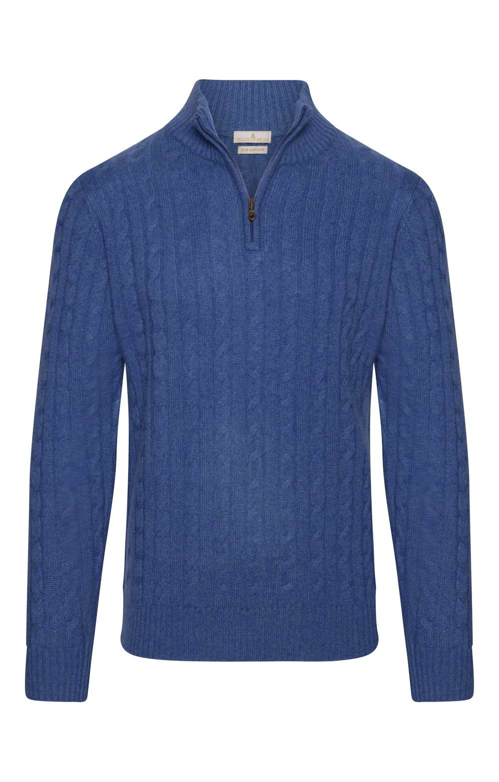 T-zip jumper in pure cashmereCable-knit styleSemi-fittedRibbing to neck, cuffs and hemDesigned by The House of BruarThis luxurious T-zip will look great over a tattersall shirt and your favourite moleskin jeans, with the option of adding a nautical blazer or country tweed jacket for sophisticated smart-casual events. Alternatively, just team it with your favourite jeans to add some cashmere luxury to your off-duty weekend look.