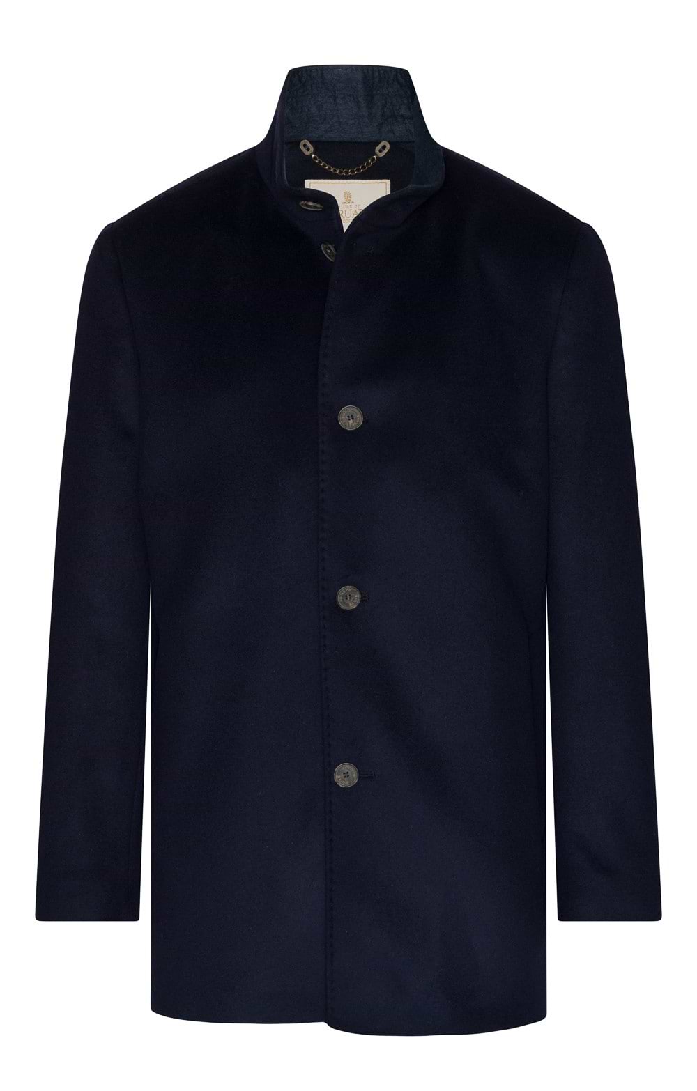 Smart short-to-medium length coat in pure cashmereButton fasteningStand collarWelt pocketsHouse of Bruar buttonsPick-stitching to edgesSatin liningDesigned by The House of BruarThis exceptional coat is a very special treat for a gentleman who loves the finer things. It is a particularly impressive coat for work scenarios where first impressions count.