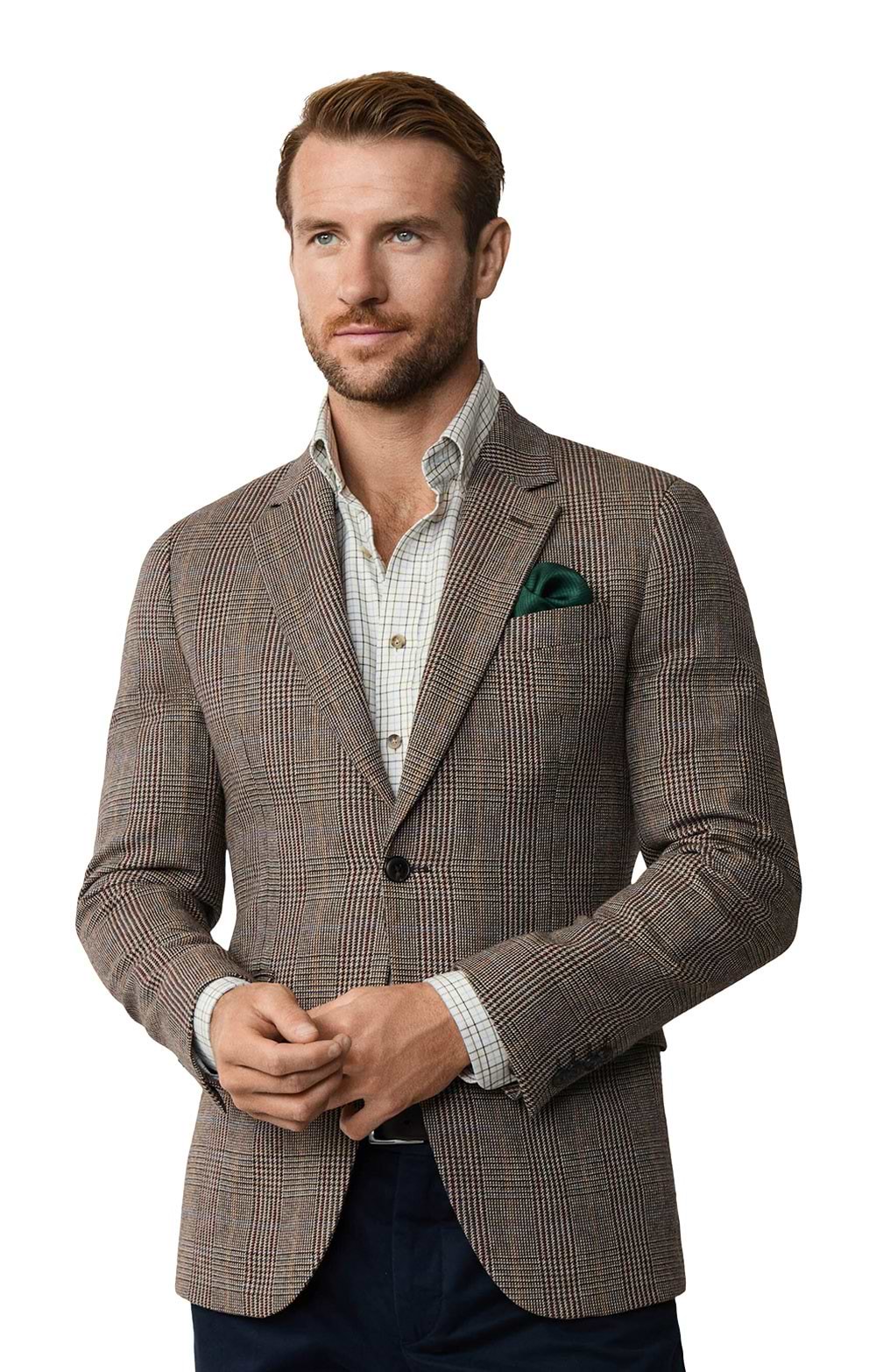 Notch lapels with two-button fasteningHeritage check cloth with refined textureFlap pockets and chest welt pocketElbow-patch detail for classic characterComfortable lined interior for easy layeringWear with a chambray shirt, selvedge jeans and suede derbies for smart-casual days, or switch to wool trousers and brogues for evening polish.