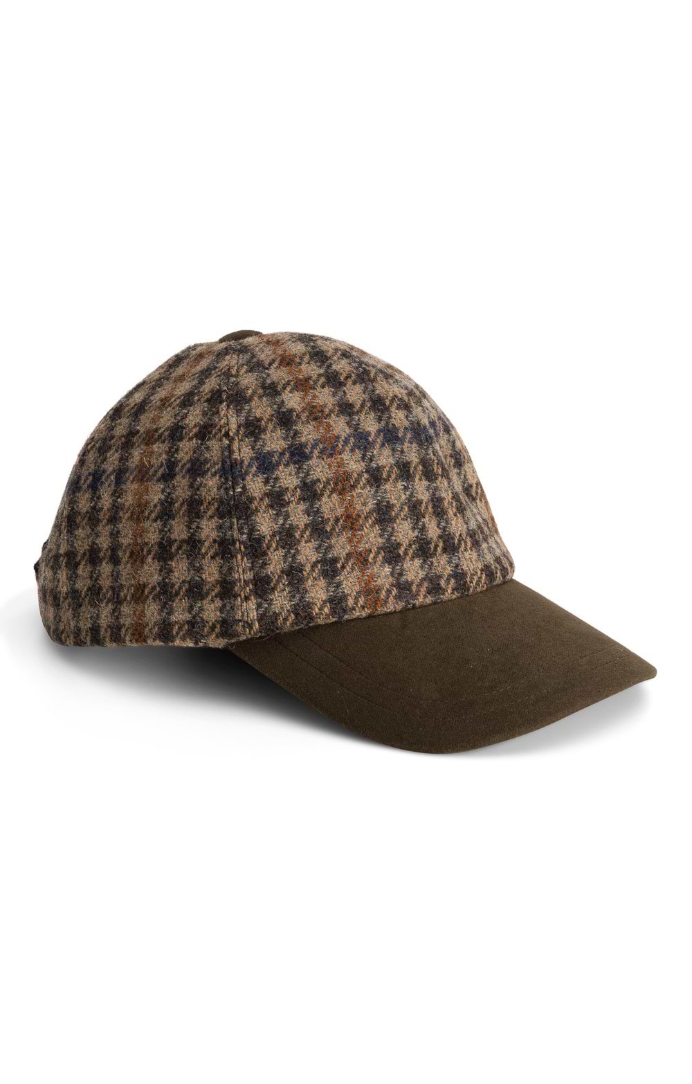 Classic eight panel baseball capCovered button detailPeak in coordinated brushed cottonAdjustable tab at the backFully linedMade in BritainThis cap would be superb on the golf course, or can give a touch of casual cool to your existing Harris Tweed® separates.