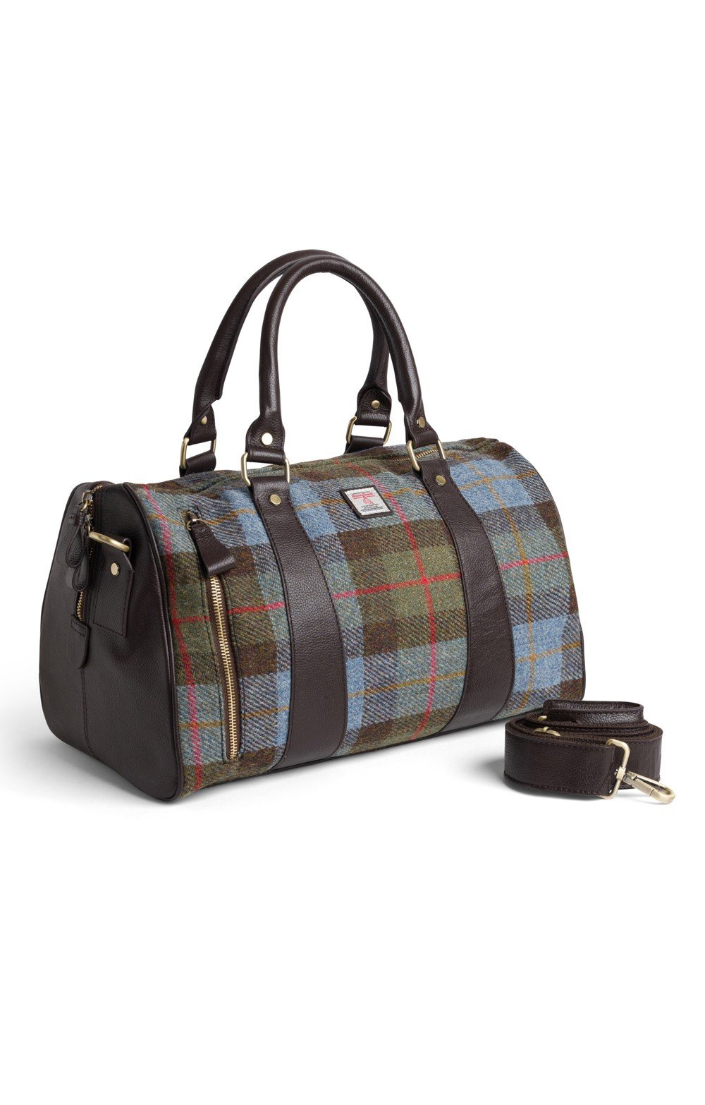 Smart compact holdall in premium leather and Harris Tweed®.One main top zip closure.One slip pocket inside.One zip pocket inside main zip closure.Adjustable and removable shoulder strap.Harris Tweed® Orb label to one side.This beautifully made accessory will appeal to anyone who loves Scottish craftsmanship, making it a wonderful gift that is sure to be deeply appreciated.