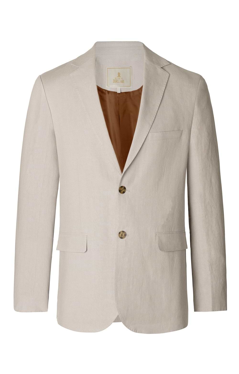 Single-breasted jacket in pure linenNotched lapelsFlap pocketsTwo button fastening with faux tortoiseshell buttonsDesigned by The House of BruarThis jacket will look superb with matching Bruar linen separates as part of a smart look for summer weddings or other formal events, but will work just as well thrown over chinos or jeans and a summer shirt for a smart-casual weekend look.