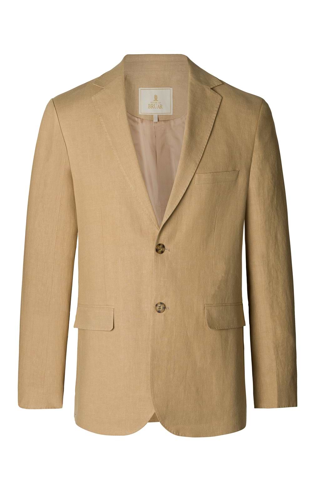 Single-breasted jacket in pure linenNotched lapelsFlap pocketsTwo button fastening with faux tortoiseshell buttonsDesigned by The House of BruarThis jacket will look superb with matching Bruar linen separates as part of a smart look for summer weddings or other formal events, but will work just as well thrown over chinos or jeans and a summer shirt for a smart-casual weekend look.
