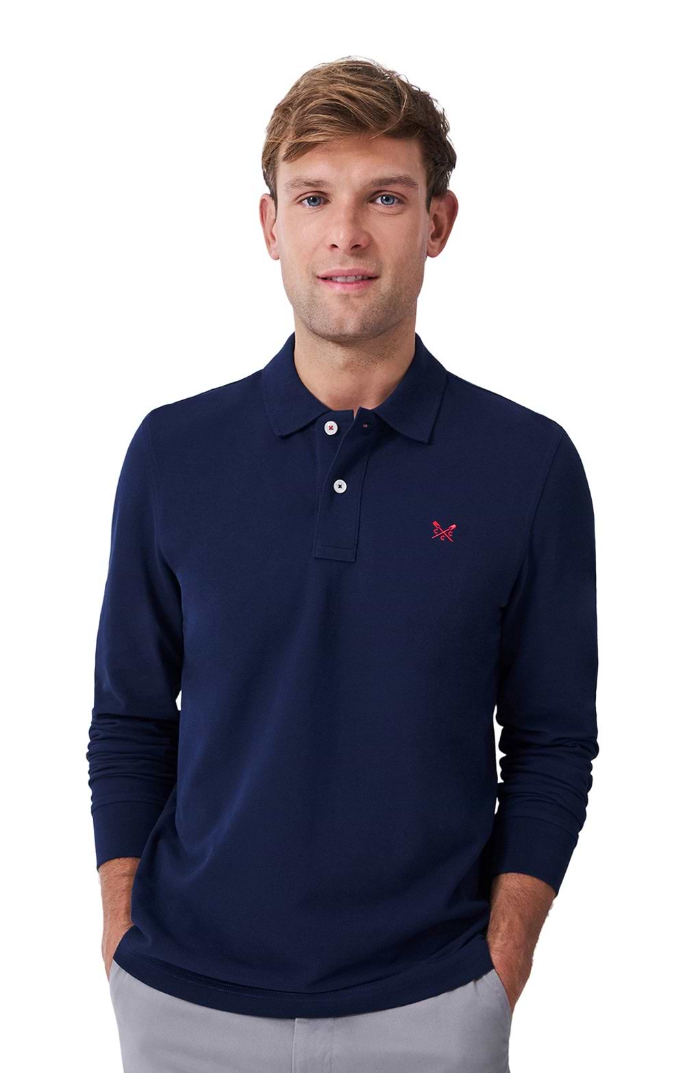 The men's Crew Clothing long sleeved piqué polo shirt delivers classic style in breathable cotton with embroidered signature details.
