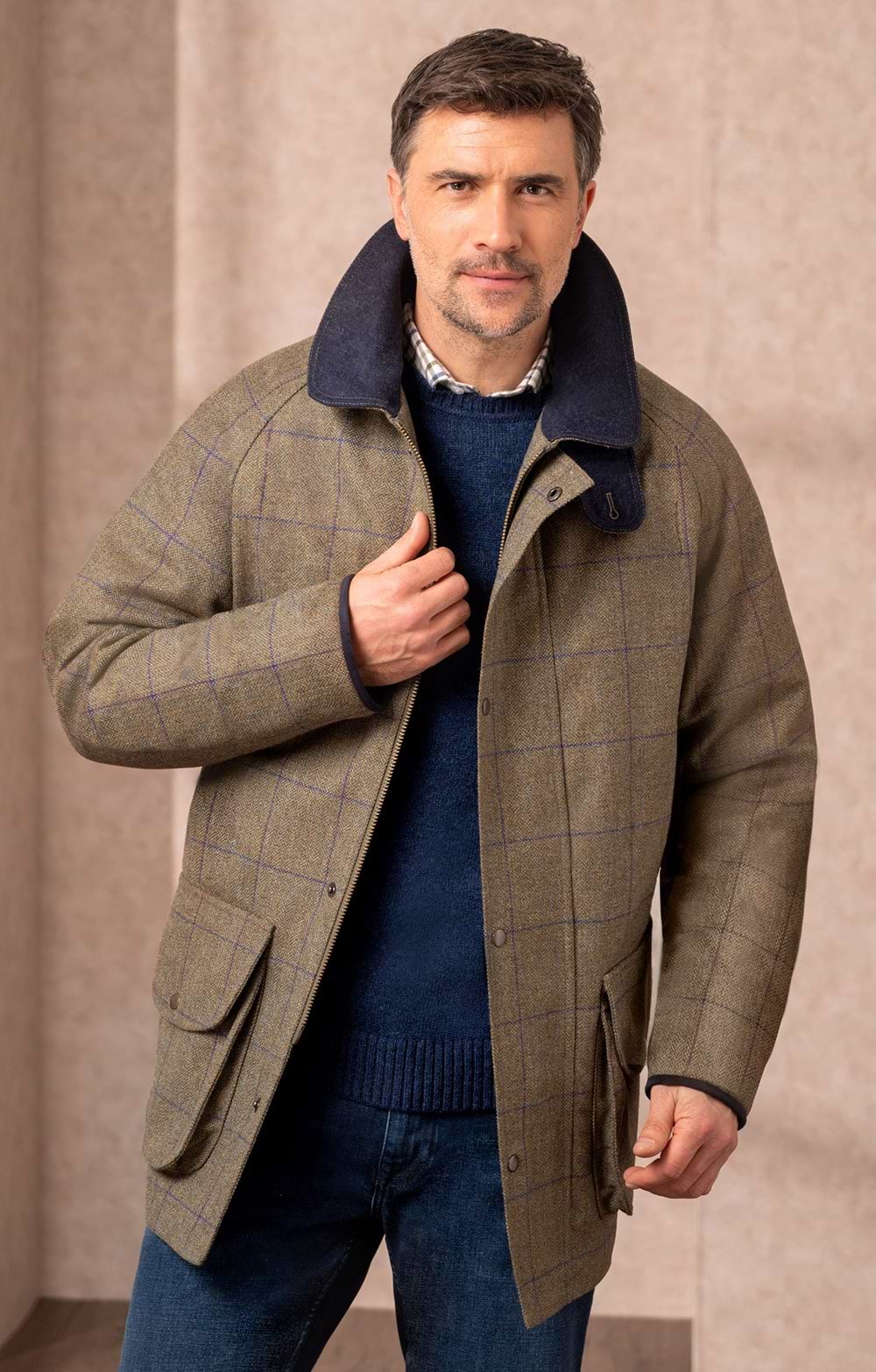 Men's British Saxony Tweed Waterproof Shooting Coat