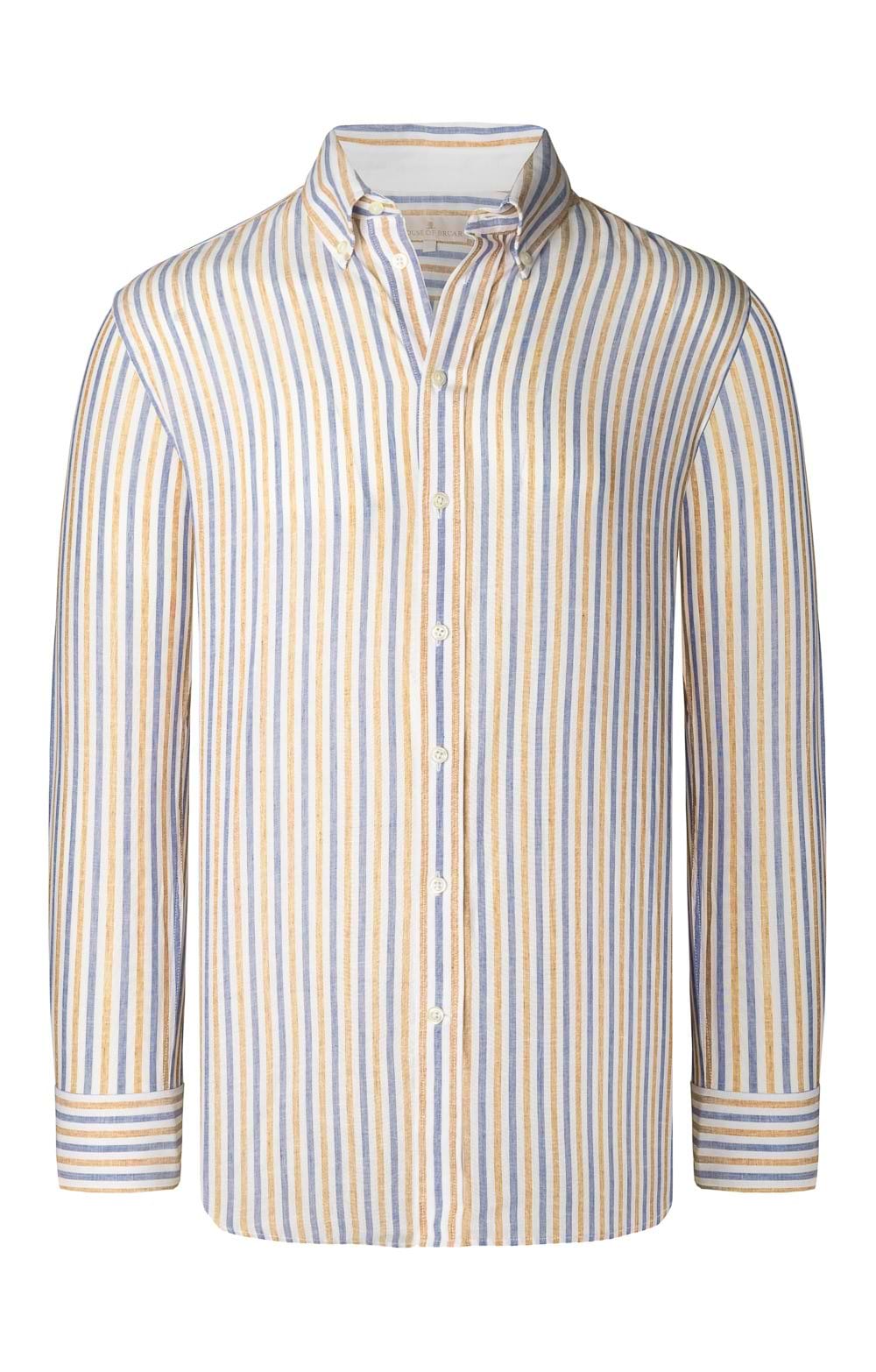Men's Linen and Cotton Button Down Stripe Shirt