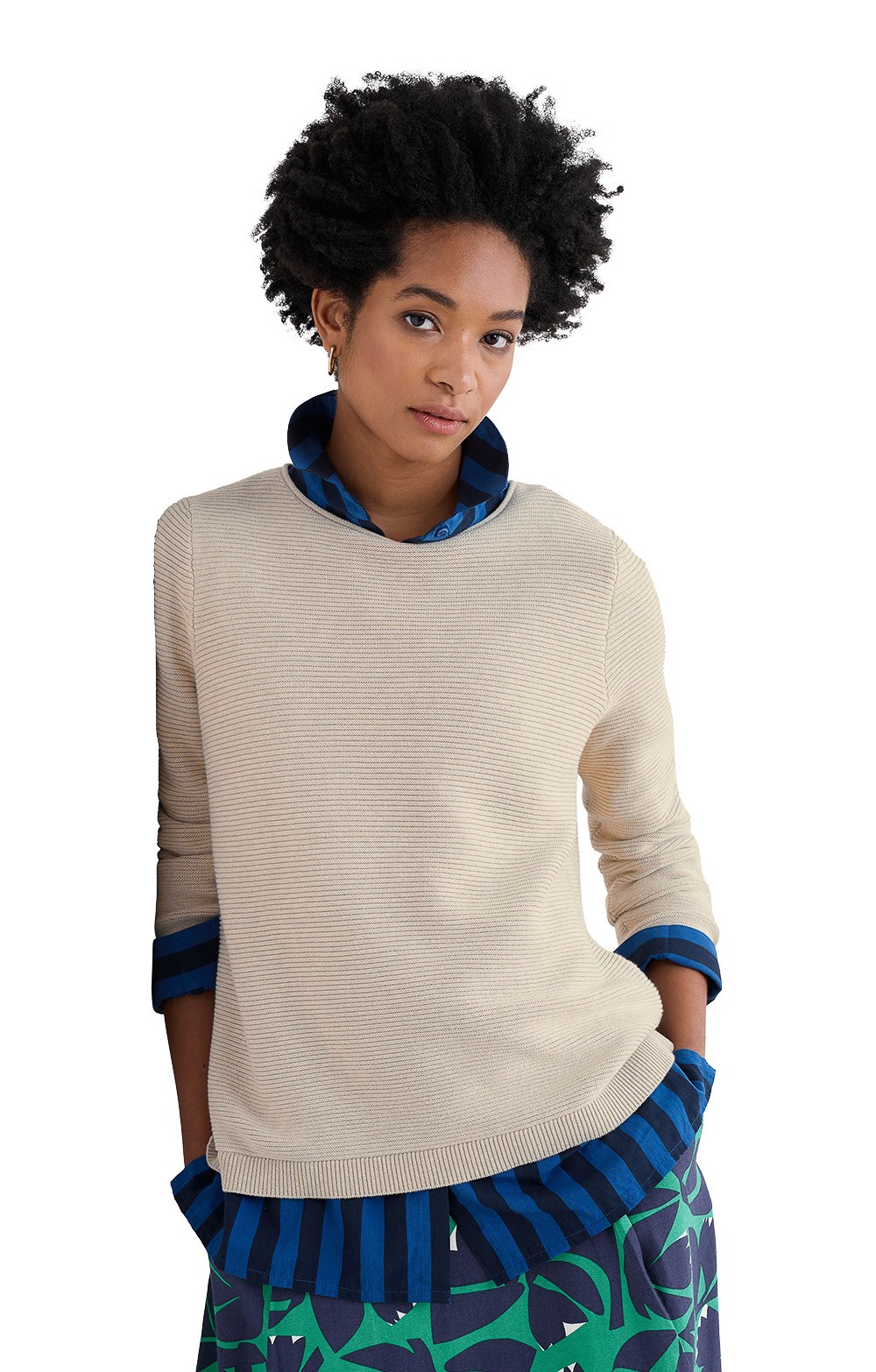 Made from organic cotton in a unique ripple stitch, this ladies Seasalt makers jumper delivers both breathability and textural interest.