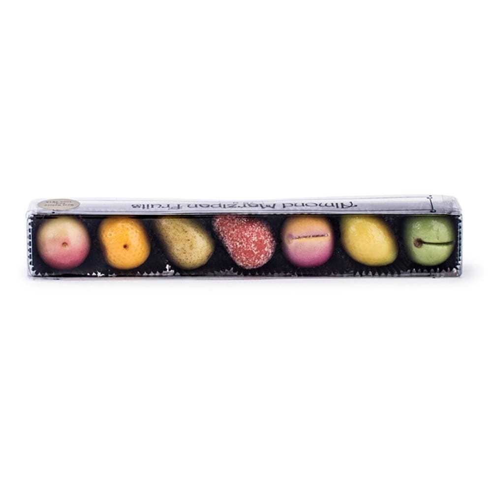Ingredients: Marzipan (Sugar, Almonds, Added Water), Sugar, Invert Sugar, Glucose Syrup, Colours: Beetroot Red, Paprika Extract; Concentrates: Carrot, Spirulina, Safflower, Apple, Hibiscus, Lemon, Radish, Sweet Potato; Invertase, Glazing Agent: Shellac, Cornflour, Molasses.