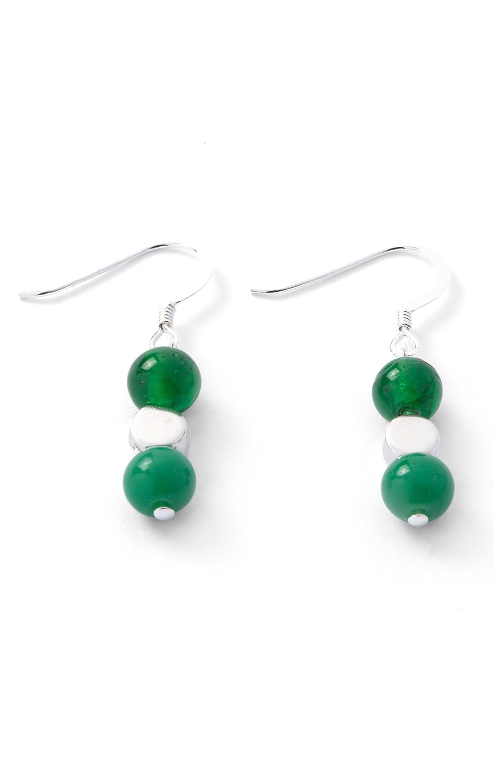 Drop earrings with glass, agate and silver plate beadsSterling silver shepherd's hooksHand-crafted in WalesThis pretty pair of earrings is perfect to give your own style a boost, but will also be a delightful small gift for someone who loves hand-crafted style.
