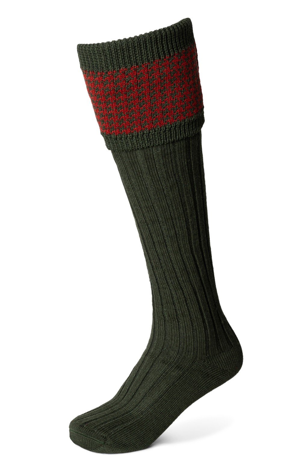 Crafted in Scotland in a breathable, hypoallergenic merino wool blend, these superb sporting socks are perfect for maintaining comfort in the field. Style is also taken care of, courtesy of their smart houndstooth check collar that's shown when the socks are turned down. They will also look great worn with a kilt in coordinating tweed or tartan.