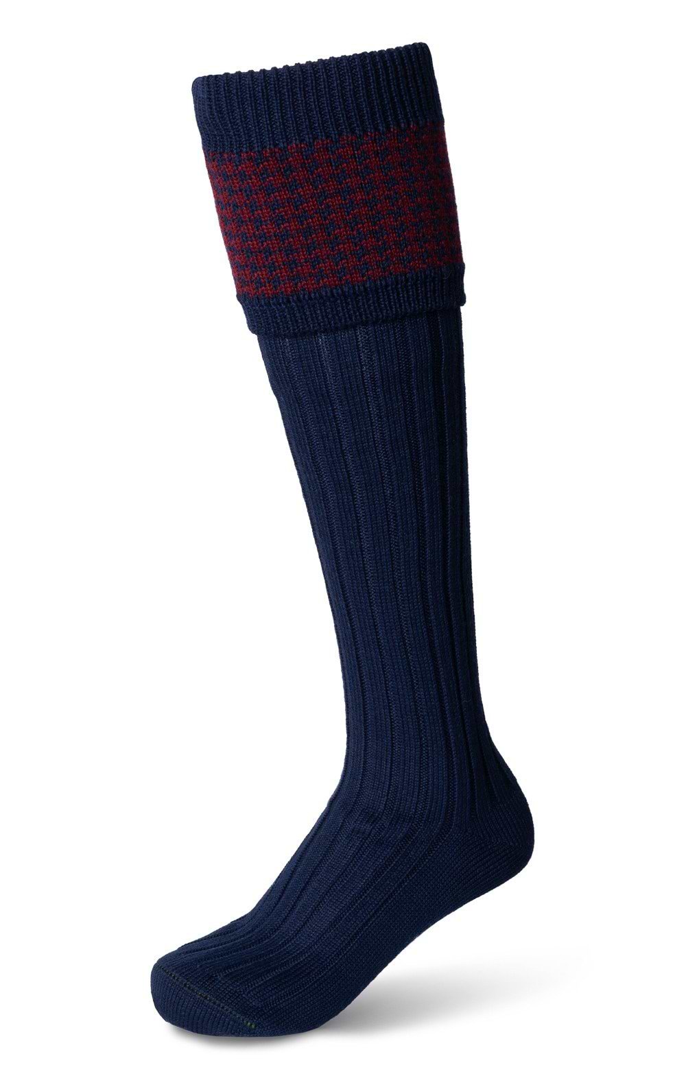 Crafted in Scotland in a breathable, hypoallergenic merino wool blend, these superb sporting socks are perfect for maintaining comfort in the field. Style is also taken care of, courtesy of their smart houndstooth check collar that's shown when the socks are turned down. They will also look great worn with a kilt in coordinating tweed or tartan.