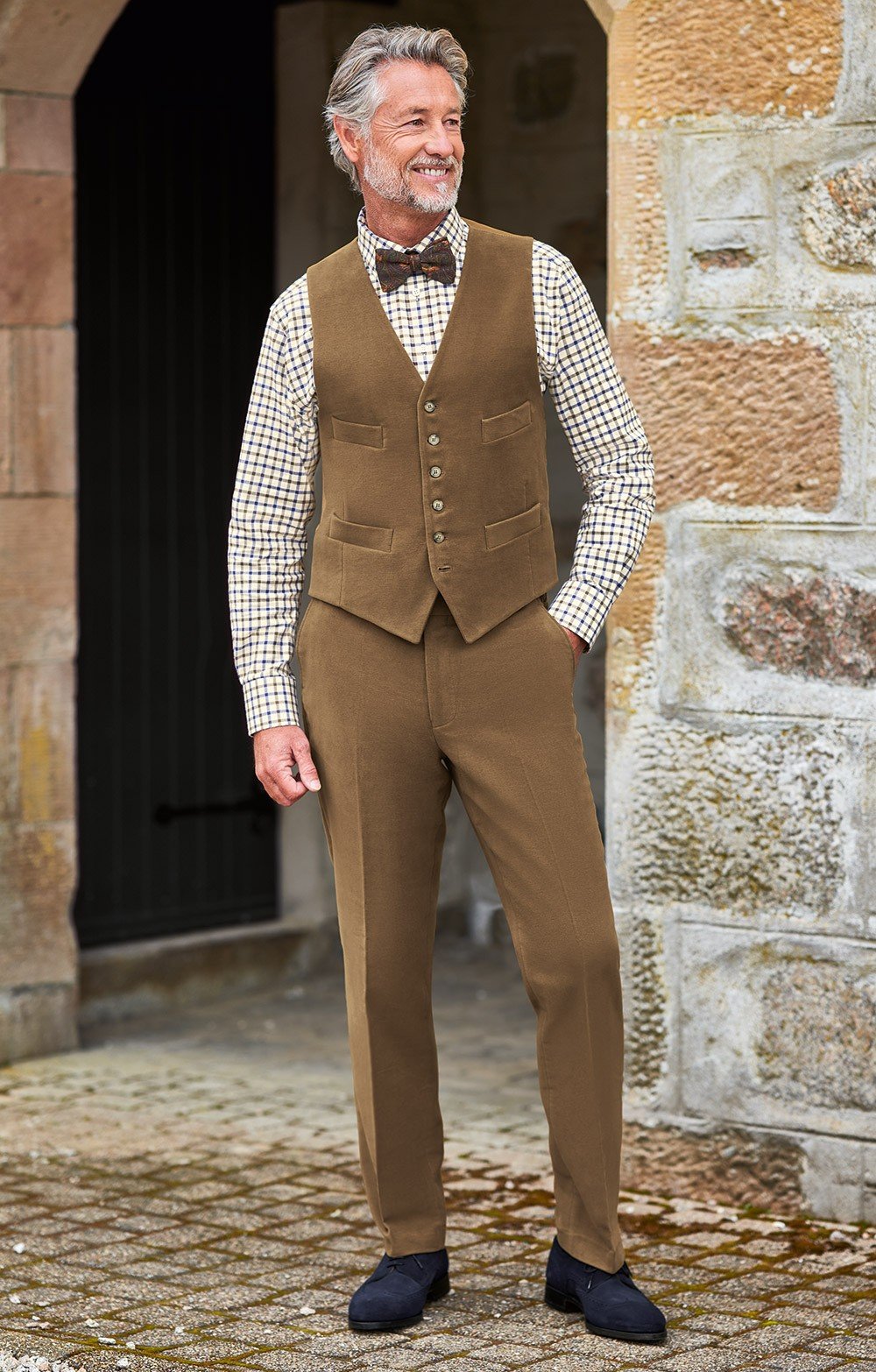 Pleated cotton moleskin trousersInside button and two hook and bar fastenings to waistband (French bearer)Zip flySide pocketsRear back pocket with button-fasteningBelt loopsDesigned by The House of BruarThese superb moleskin trousers will quickly become firm favourites in your country wardrobe. For an impressive country look that is perfect for an autumn wedding, team these trousers with our