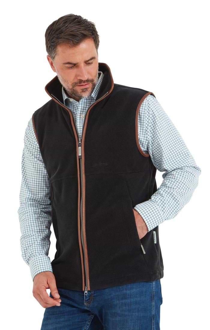 Classic country zip bodywarmer in high quality fleeceTipped edges in robust PU leatherCosy stand collarHandwarmer pockets with zipsAdjustable drawcord at the hem.Zips into the Ptarmigan interactive coatSchöffel branding to zip pulls and left chestPerfect for country wear over your trusted Bruar tattersall shirts, this fleece also looks great in town on your morning commute.