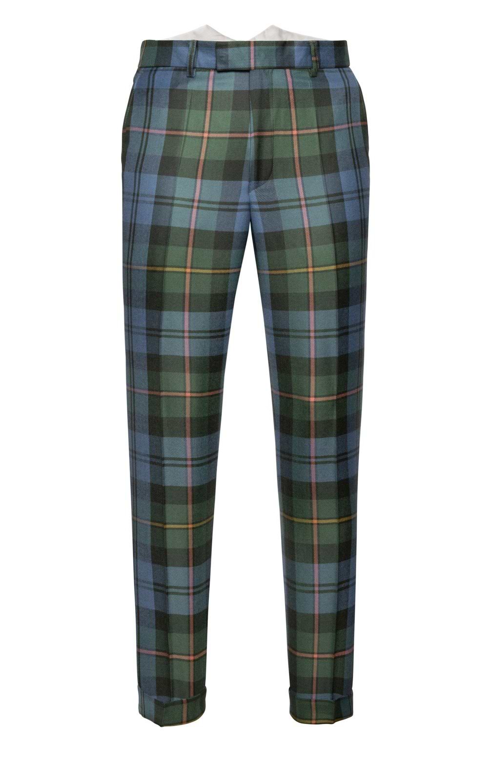Traditional tartan trewsTwo hook-and-bar and one button fastened waistband with zip flyFive belt loopsSide pockets and rear welt pocketFlattering contemporary cutHalf lined to front kneeBuilt-in turn up featureDesigned by The House of BruarAlways a more practical alternative to traditional kilts, tartan trousers have been growing in popularity for formal events like weddings, banquets and award ceremonies for gentlemen of all ages. They are also a great piece for less formal evening events, looking superb with an open-necked evening shirt to show off your love of Scottish tradition.