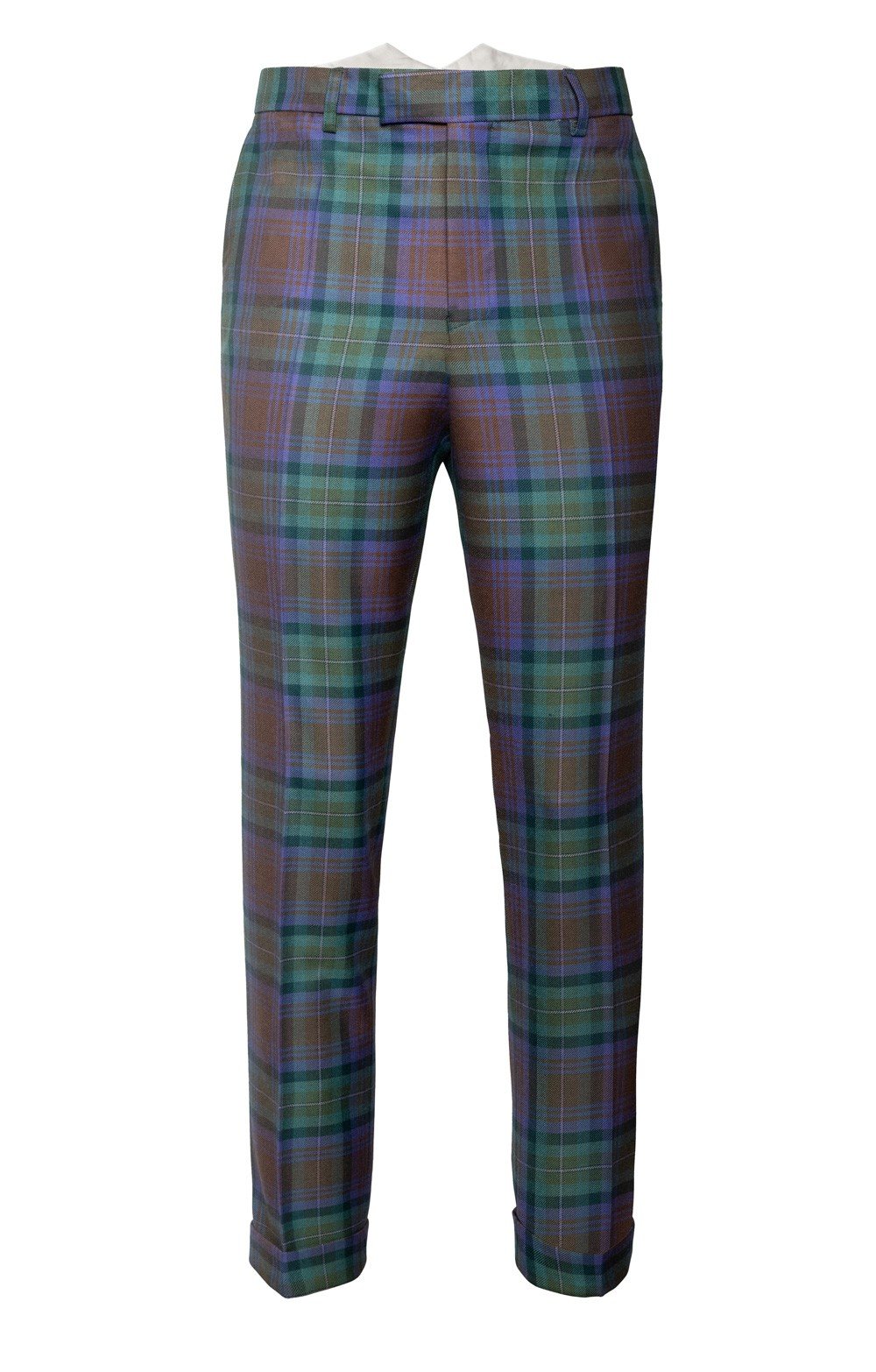 Traditional tartan trewsTwo hook-and-bar and one button fastened waistband with zip flyFive belt loopsSide pockets and rear welt pocketFlattering contemporary cutHalf lined to front kneeBuilt-in turn up featureDesigned by The House of BruarAlways a more practical alternative to traditional kilts, tartan trousers have been growing in popularity for formal events like weddings, banquets and award ceremonies for gentlemen of all ages. They are also a great piece for less formal evening events, looking superb with an open-necked evening shirt to show off your love of Scottish tradition.