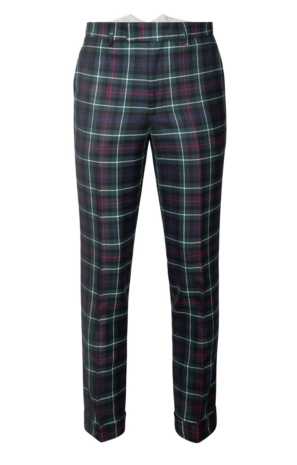 Traditional tartan trewsTwo hook-and-bar and one button fastened waistband with zip flyFive belt loopsSide pockets and rear welt pocketFlattering contemporary cutHalf lined to front kneeBuilt-in turn up featureDesigned by The House of BruarAlways a more practical alternative to traditional kilts, tartan trousers have been growing in popularity for formal events like weddings, banquets and award ceremonies for gentlemen of all ages. They are also a great piece for less formal evening events, looking superb with an open-necked evening shirt to show off your love of Scottish tradition.