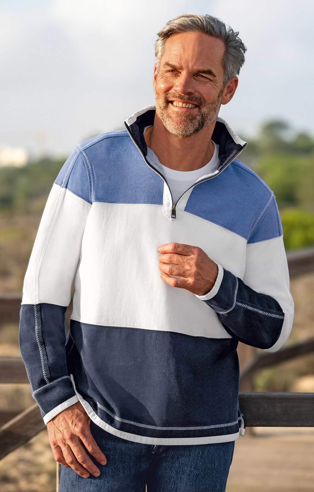 Men's Vintage T-Zip Striped Rugby Shirt