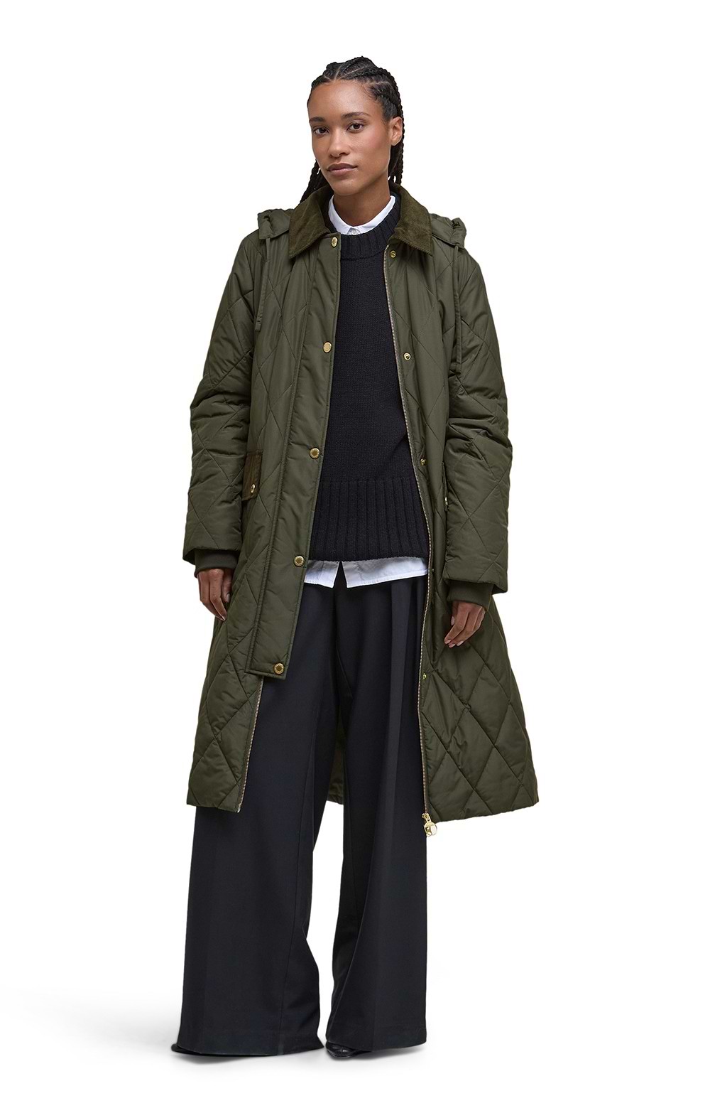 Quilted design ensures insulation and comfortElegantly finished with cord trim and Barbour embroideryZip and button fastening for secure closureIdeal for pairing with country cords and leather boots for rural pursuits or style with dark jeans and a cashmere scarf for smart weekend wear.