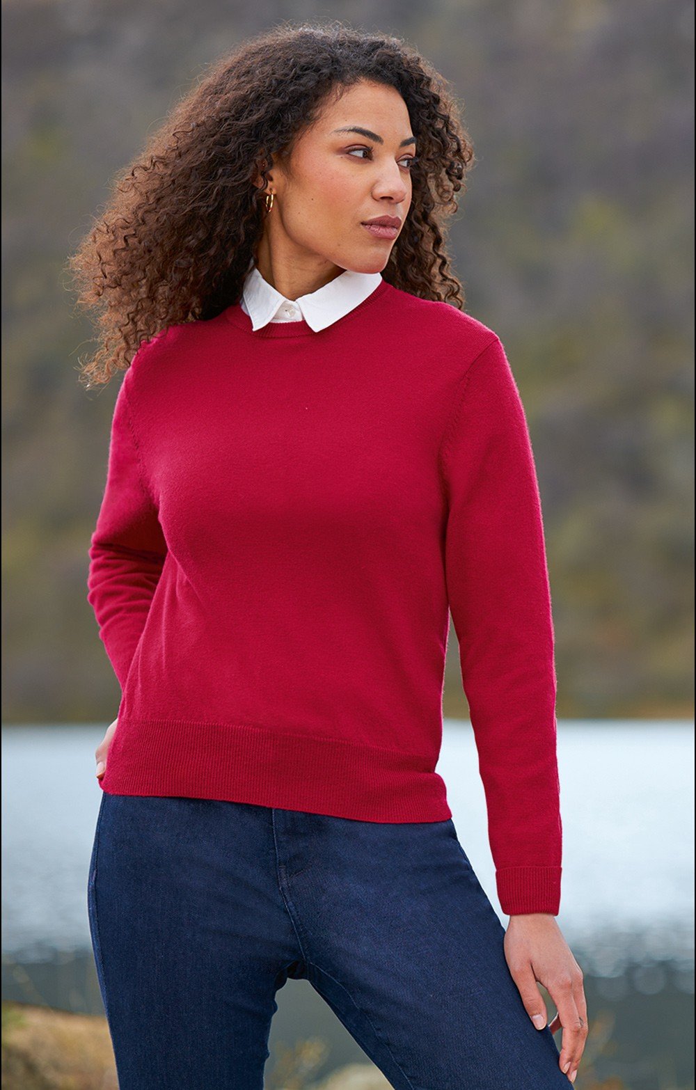 Offered in superlative merino wool, famous for its softness, our ladies merino crew neck jumper is a luxurious take on a classic crew neck.