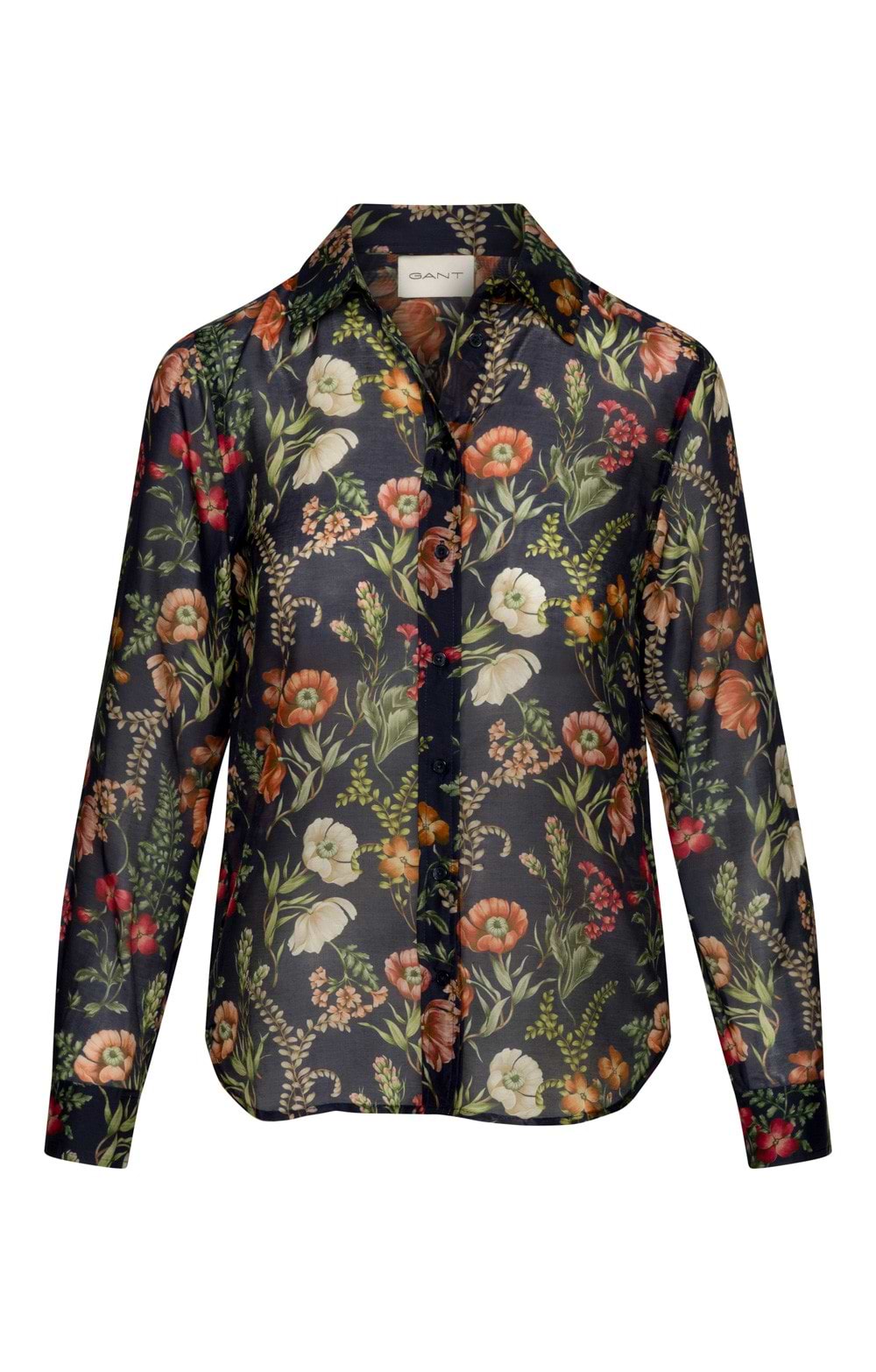 The ladies Gant midi floral shirt dress features a fluid drape with elegant floral print, classic shirt detailing, and flattering belted waist.