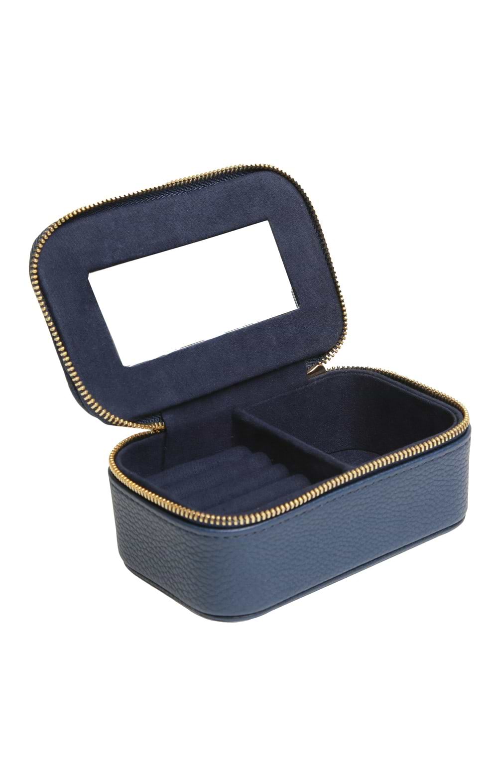 This petite PU leather case features a zip fastening, a protective plush interior and a handy mirror in the lid. Finished with elegant gold-tone details, it's perfect for travelling or keeping beside your bed.