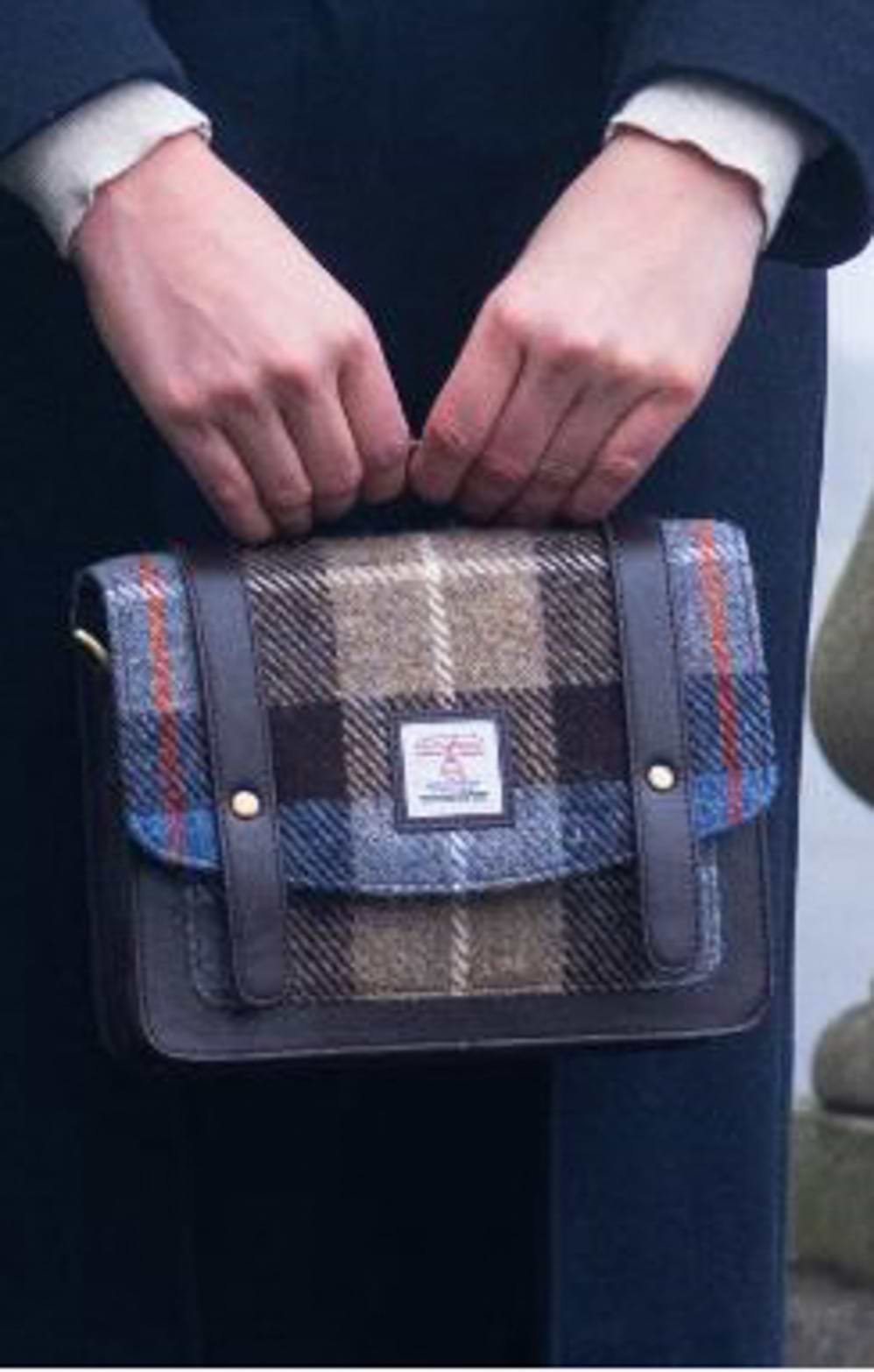 Satchel style small handbag with Harris Tweed®PU leatherOrb label to the frontFlap with magnetic studRear zip pocketInternal zip pocketFront pocketDetachable, adjustable cross body strapThe perfect accessory for evenings where a large bag can be an encumbrance, this stylish bag is a special treat for you or also will make a fabulous gift.