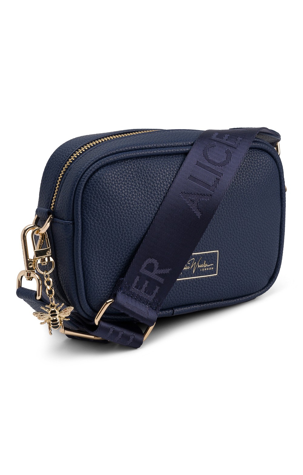 Redefining compact fashion, this delightful crossbody bag captures the renowned charm of the original Soho design. Perfectly structured for those on the move, it offers a sleek, minimalist style with a single main zip compartment. The iconic Alice Wheeler gold bee charm adds a distinctive touch, while the new branded strap ensures comfort and style. The disctinctive guiter strap gives a contemporary touch that all fashionistas will adore.