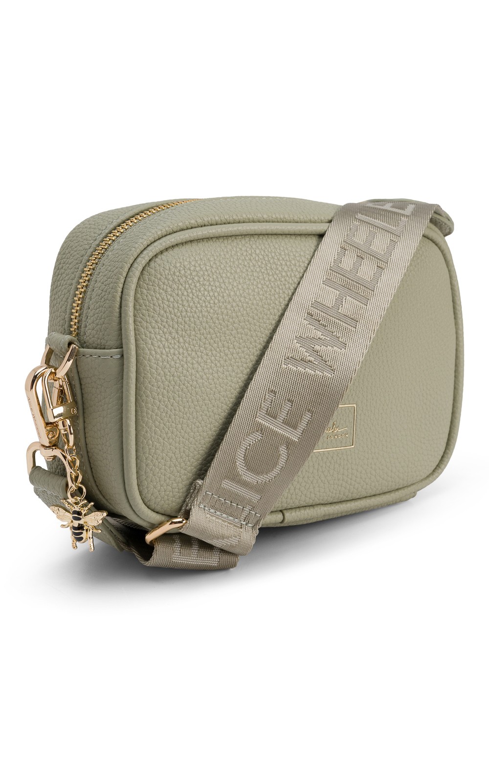 Redefining compact fashion, this delightful crossbody bag captures the renowned charm of the original Soho design. Perfectly structured for those on the move, it offers a sleek, minimalist style with a single main zip compartment. The iconic Alice Wheeler gold bee charm adds a distinctive touch, while the new branded strap ensures comfort and style. The disctinctive guiter strap gives a contemporary touch that all fashionistas will adore.