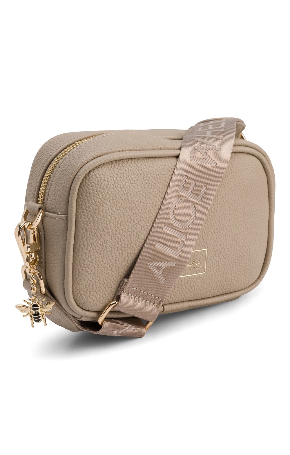 Single main zip compartmentCompact and lightweightBranded strapIconic gold bee charmEnhance your wardrobe with the Alice Wheeler Mini Soho Crossbody bag.