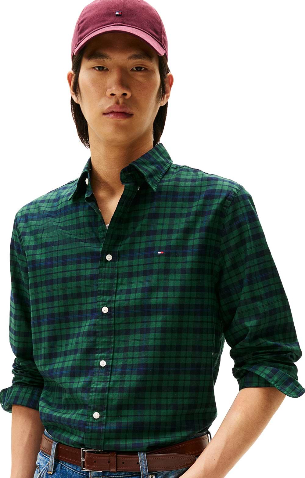 Pure cotton jersey materialPlaid patternButton placketRounded cuffs with single buttonEmbroidered Tommy Hilfiger flag on the chestPair tucked into jeans for a smart casual look or over walking trousers for a stroll with the dog.