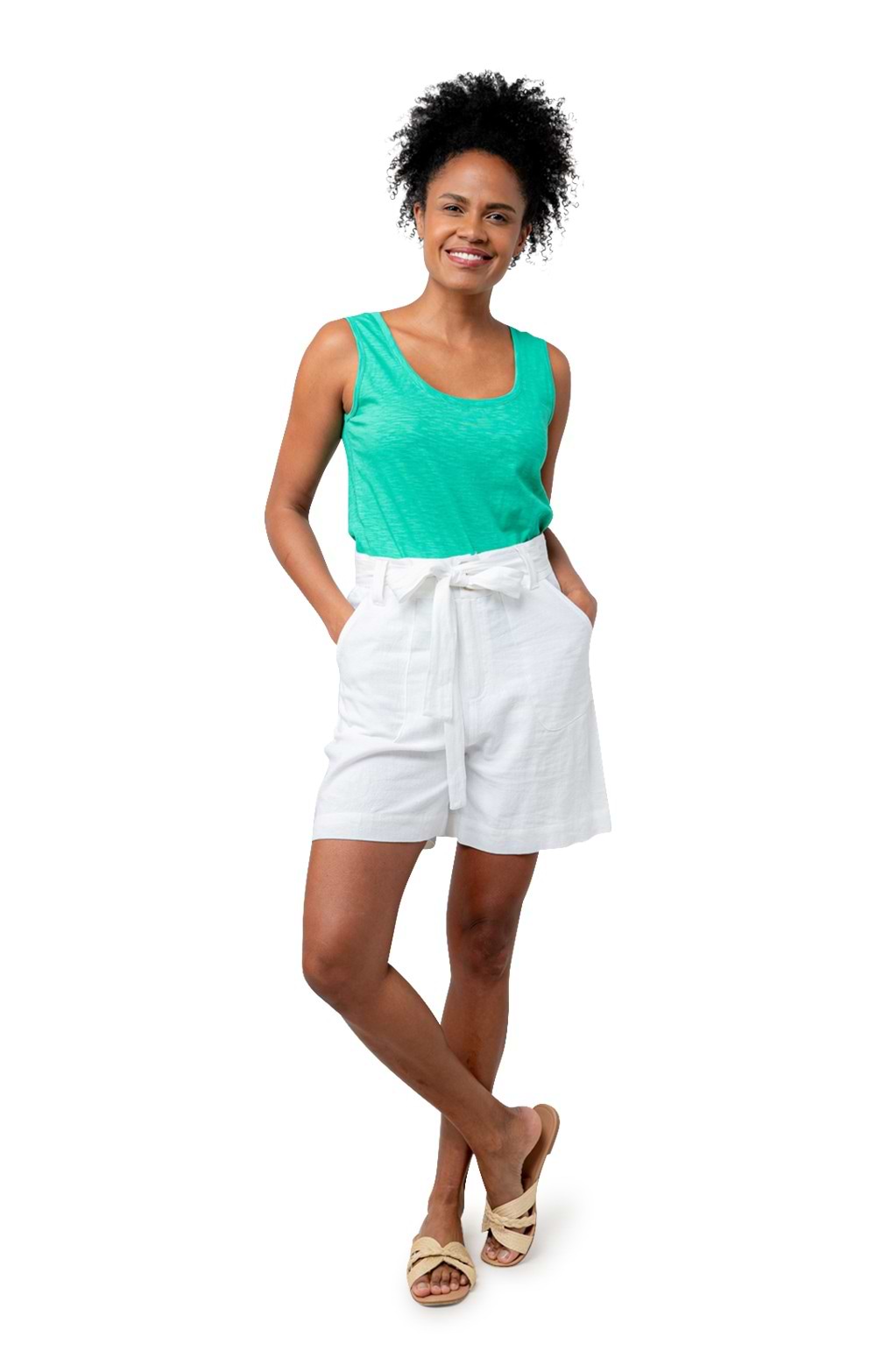 Breathable linen-rich blendSoft, tactile fabric for all-day comfortDeep patch side and back pocketsBelted waist tie for an adjustable fitButton and zip fasteningMid-thigh length for warm-weather wear Pair with a crisp cotton blouse and loafers for a polished look or style with a relaxed tee and sandals for casual outings.