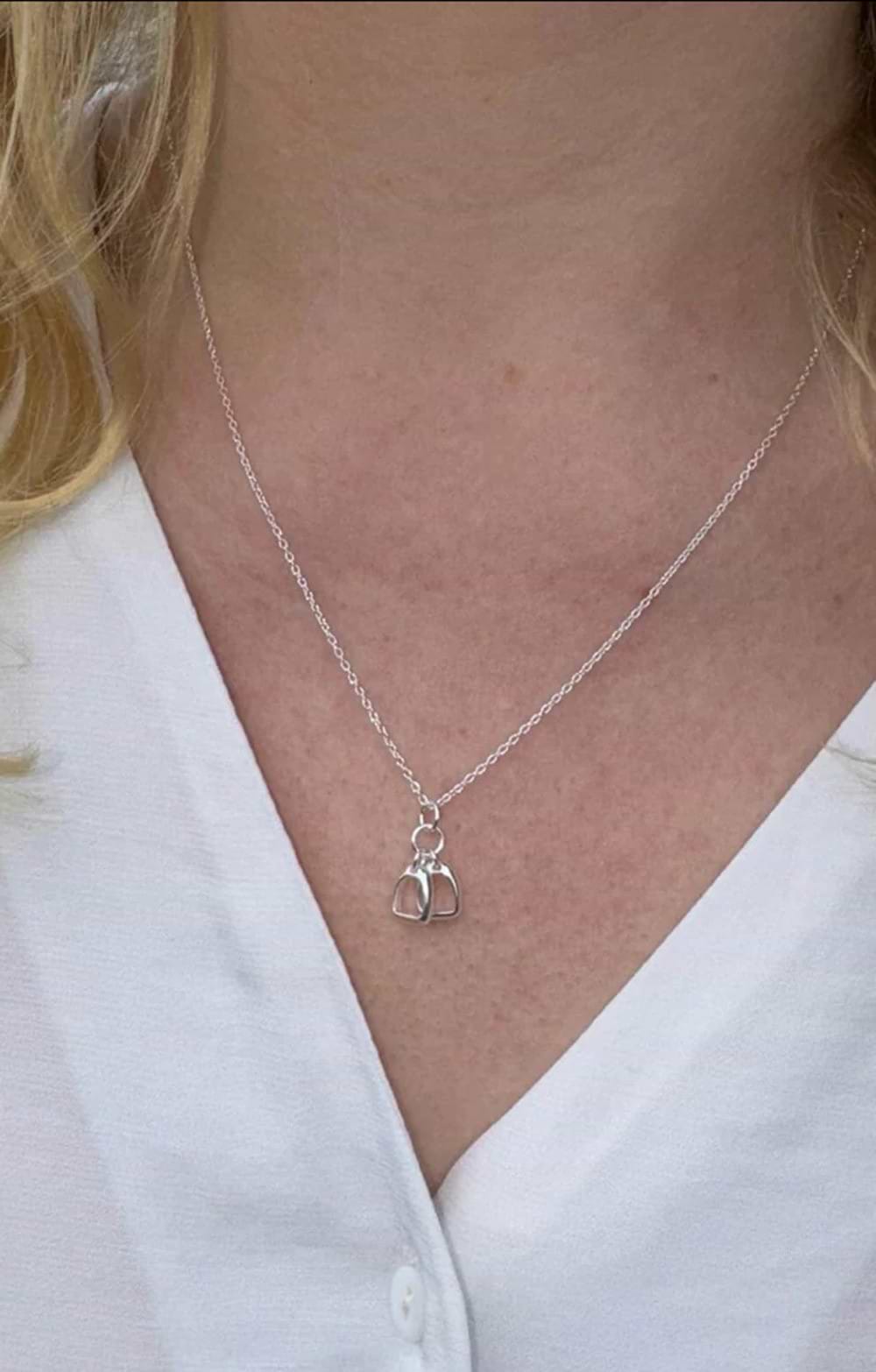Reeves & Reeves Sterling Silver Two Stirrup Charm Necklace