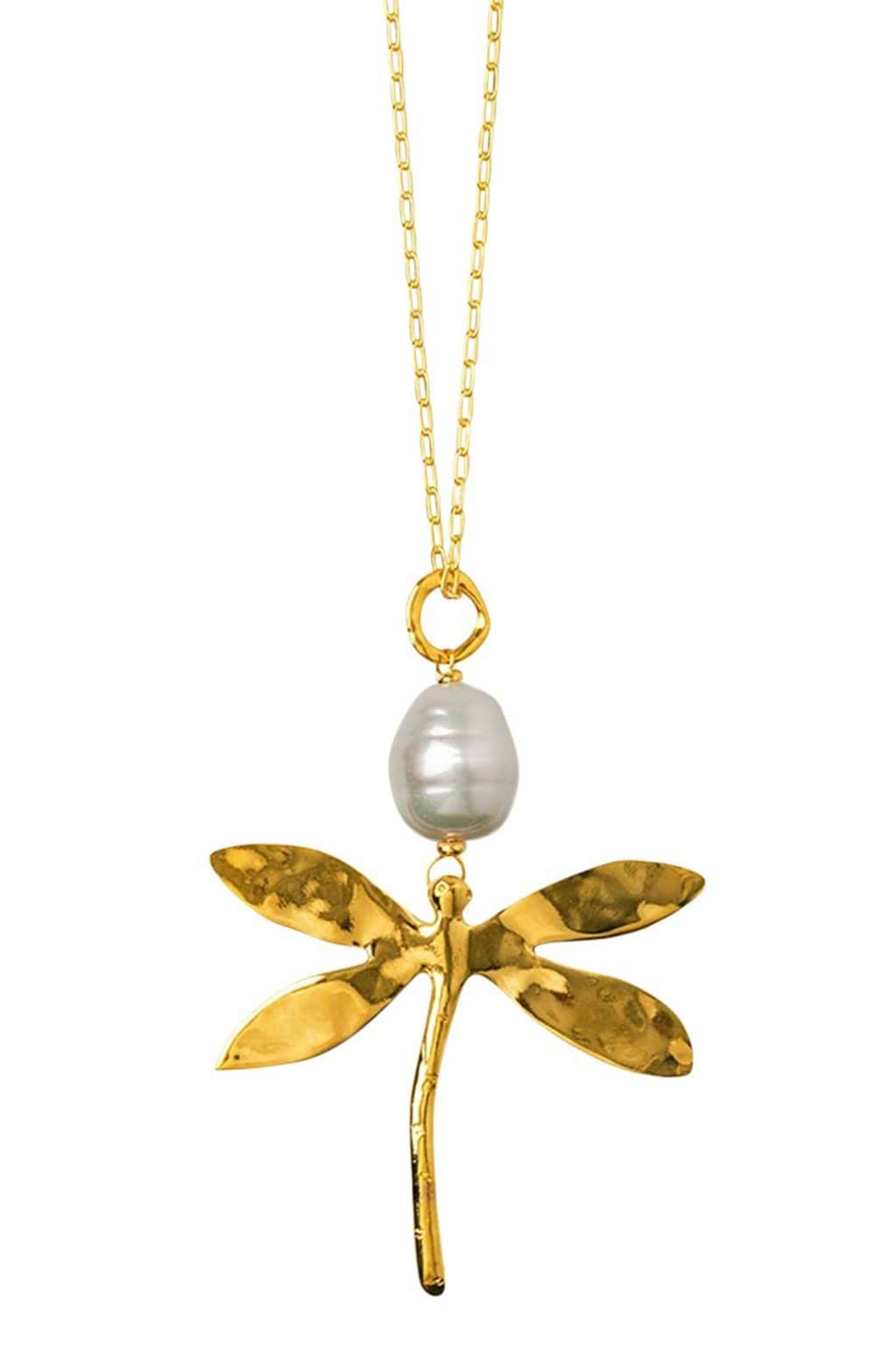 Ladies Gold Plated Dragonfly with Pearl Pendant