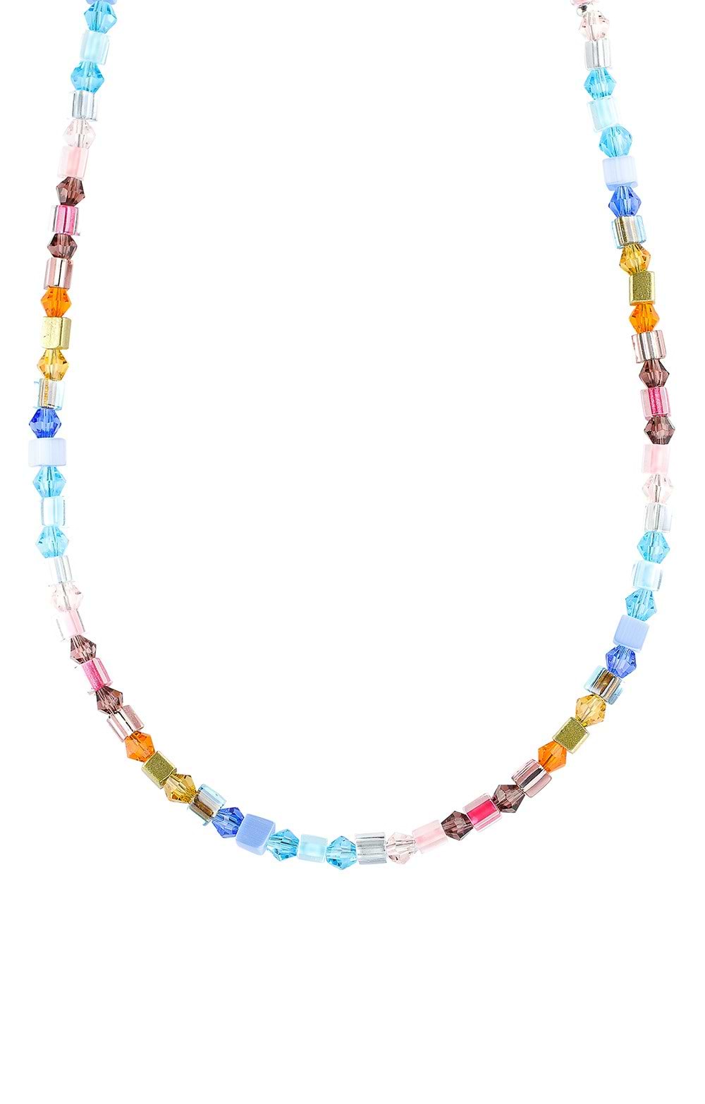 Arran Bay's delightful beaded creations have won a devoted audience both at home and abroad. This necklace features a range of delicate faceted beads in a rainbow of colours, interspersed with metallic hematite cubes that unify the piece. At 18 inches, this piece sits high enough to be seen at your neckline, but is long enough to be superbly comfortable. A magnetic clasp makes putting the necklace on and taking it off a breeze.