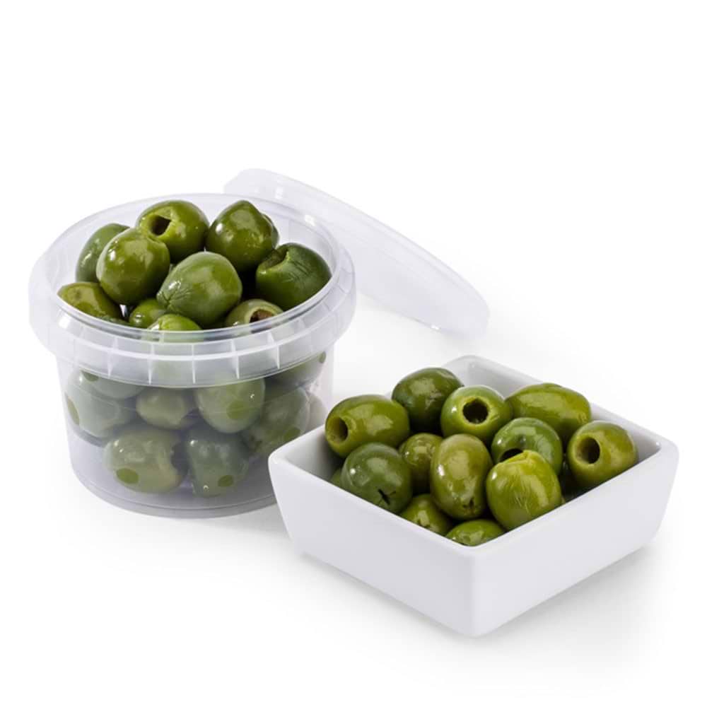 Distinctive, extra-large, bright green olives, sourced from Trapani, Sicily, an olive growing region from where this variety originates. The early harvest olives are cured using the Castelvetrano method (named after the Sicilian town which developed it) a process which means that they retain their vibrant colour, notably delicate, fresh flavour and firm yet juicy texture.