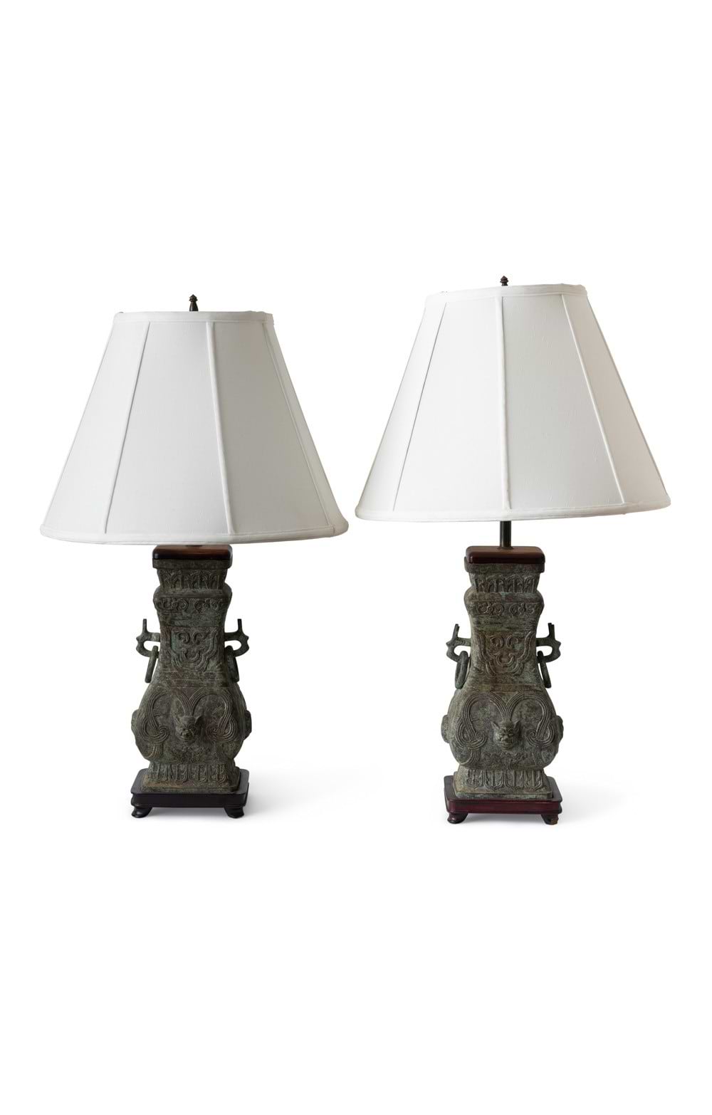 Pair of Chinese Archaic Style Patinated Metal Vases, Mounted as Lamps, 20th Century