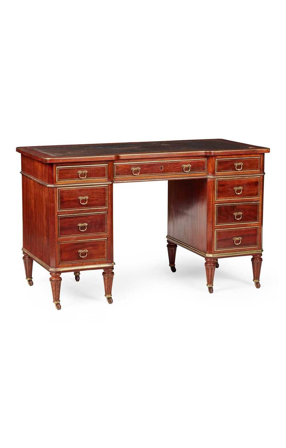 Pair Of Directoire Style Brass-Banded Mahogany Pedestal Desks, Edwards & Roberts Late, 19th Century