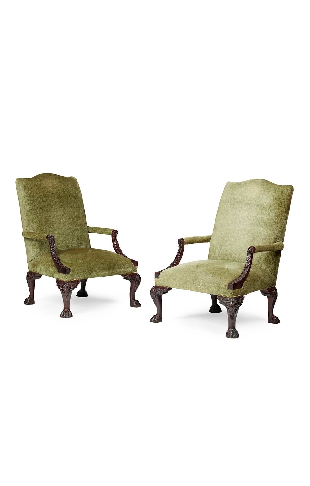 Pair Of George II Style Mahogany Gainsborough Armchairs, Late 20th Century