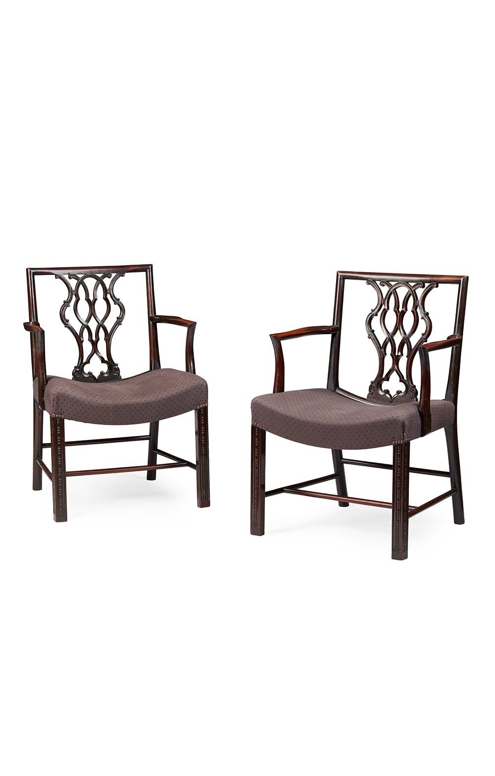 Pair Of Georgian Style Mahogany Armchairs, By Whytock & Reid, 20th Century