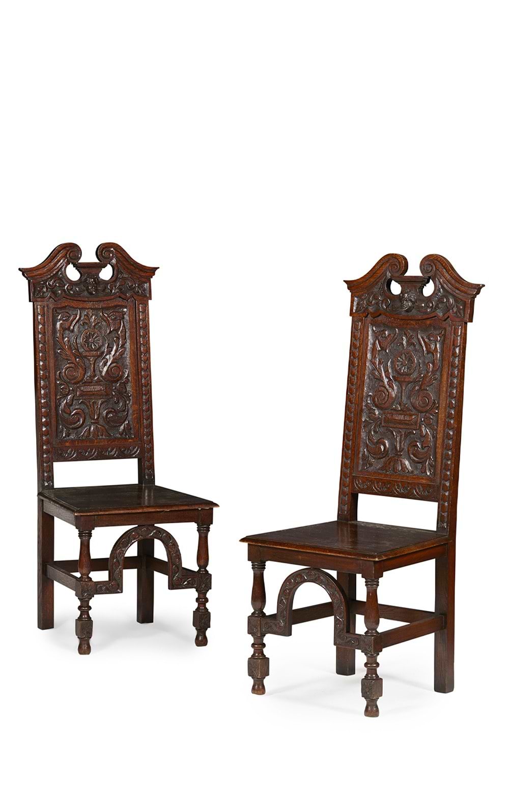 Pair of Renaissance Revival Oak Hall Chairs, 19th Century