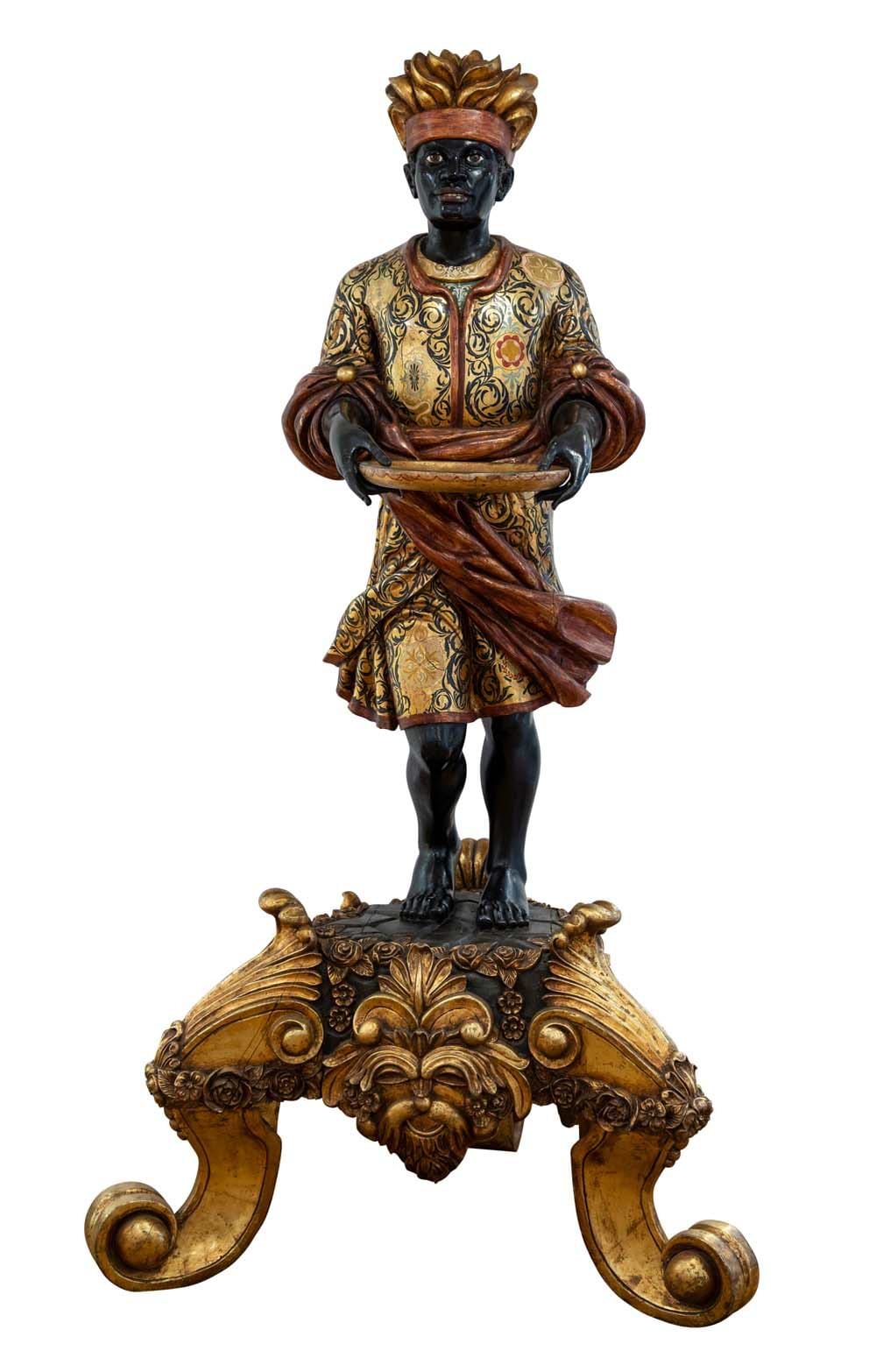 Pair of Venetian Carved, Polychromed and Gilt Figured of North African Attendants, Late 19th/Early 20th Century