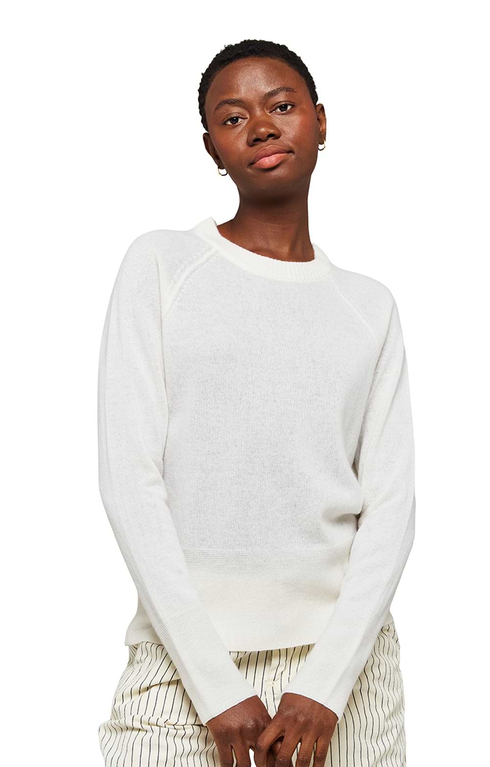 The ladies Paloma sweater is one of Brodie Cashmere s best-loved garments hardly surprising with its subtly elegant design in 100% cashmere. This soft, finely knitted jumper has a classic relaxed ribbed crew neck collar and wide bands of fancy cable knit replacing the more traditional gathered ribbing at the cuffs and hem, a softly feminine design touch which gives it a tunic feel. The jumper s hemline falls at the hips, allowing you to style with un-tucked blouses or shirts or show off your favourite skirts or trousers. This sweater would look beautiful with a string of pearls for lunch with friends, but is equally perfect for relaxed daytime wear.