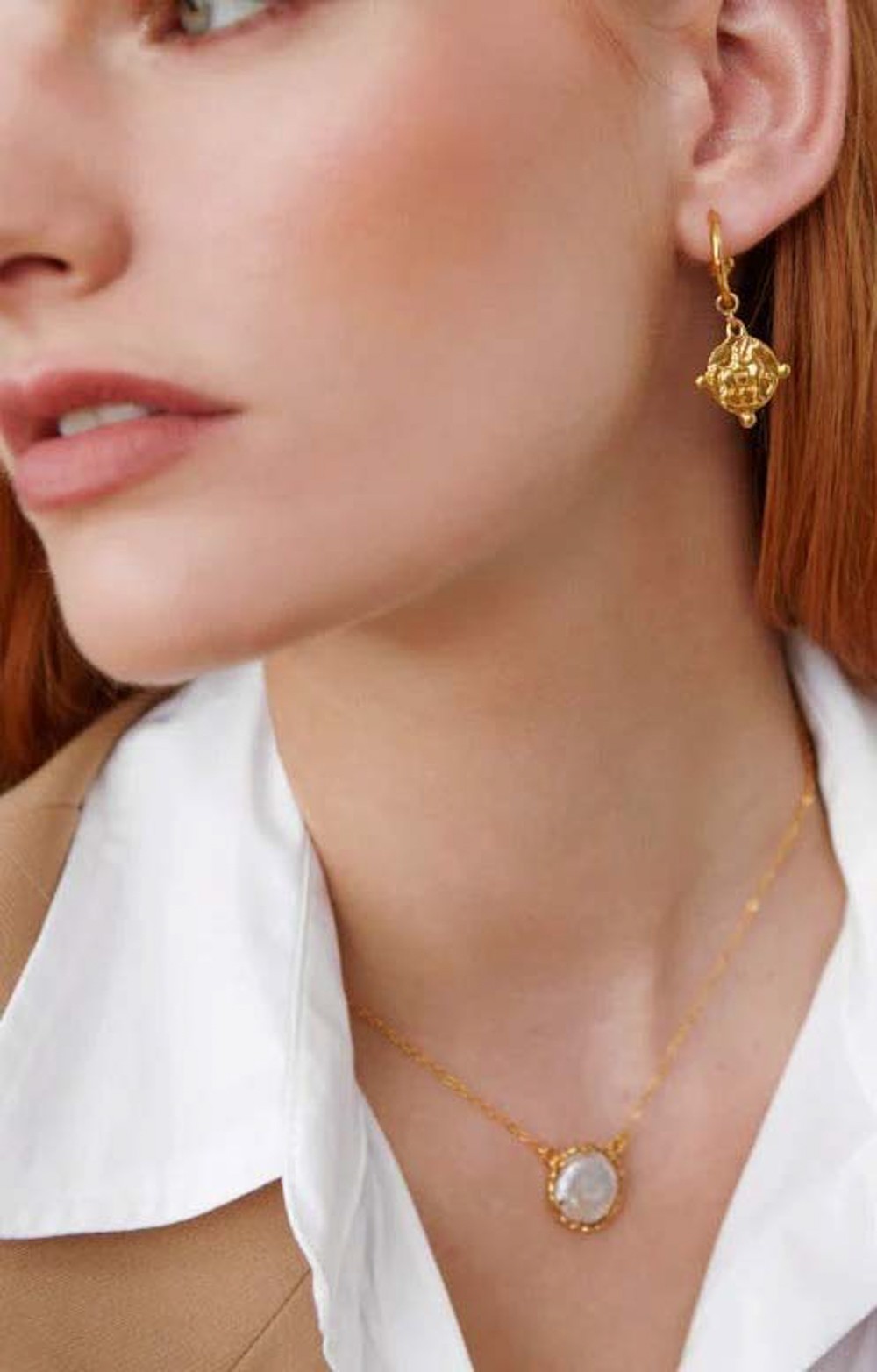 This timeless piece exemplifies understated elegance through its classic claw-set pearl presentation. The flat freshwater coin pearl showcases natural lustre and organic beauty, whilst the vintage-inspired claw setting adds sophisticated detail that enhances the design. The 22-carat gold plating creates beautiful contrast against the creamy pearl, and the delicate chain ensures comfortable daily wear. The shorter length makes it perfect for layering with other necklaces or wearing solo for refined simplicity that complements both professional and casual styling.