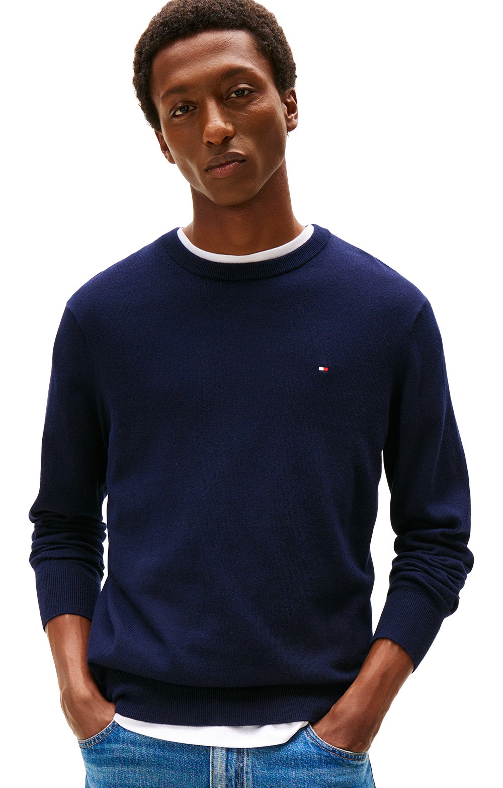 Crafted for lasting refinement, the men's Tommy Hilfiger pima cotton-cashmere crew neck jumper blends softness with style for year-round wear.
