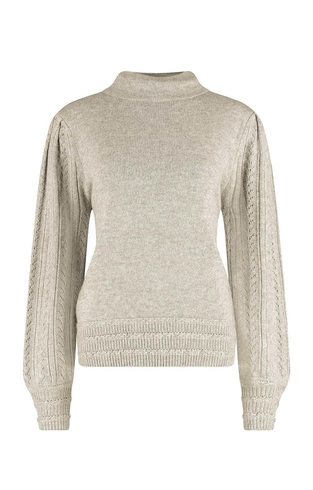 Ladies Pointelle Sleeve Funnel Neck Jumper