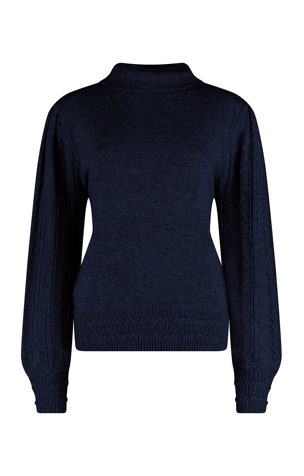 Ladies Pointelle Sleeve Funnel Neck Jumper
