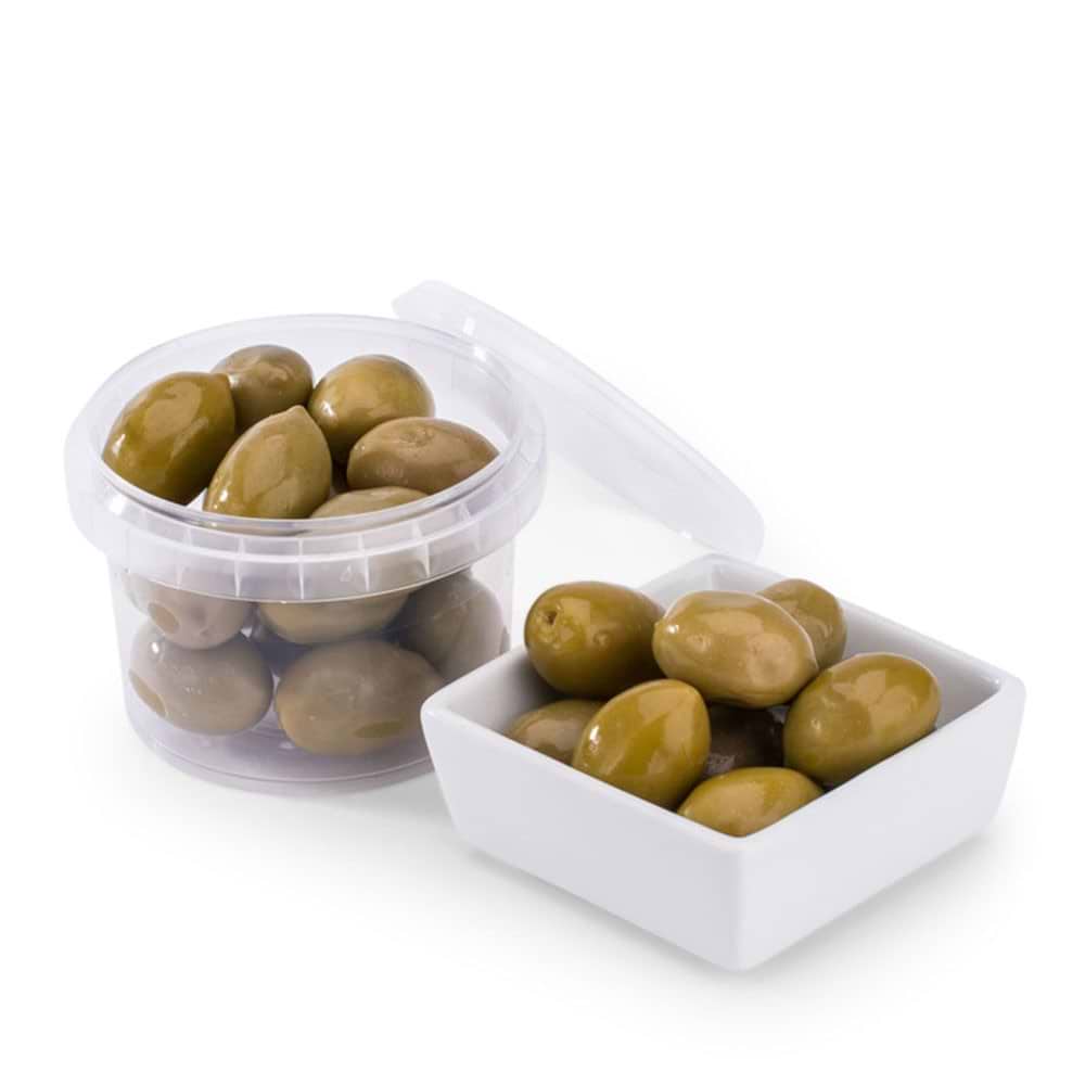 Classic, very large, Greek green table olives, grown in the foothills of Mount Olympus. The ample flesh is noticeably juicy and mild in flavour with a clean tasting finish.