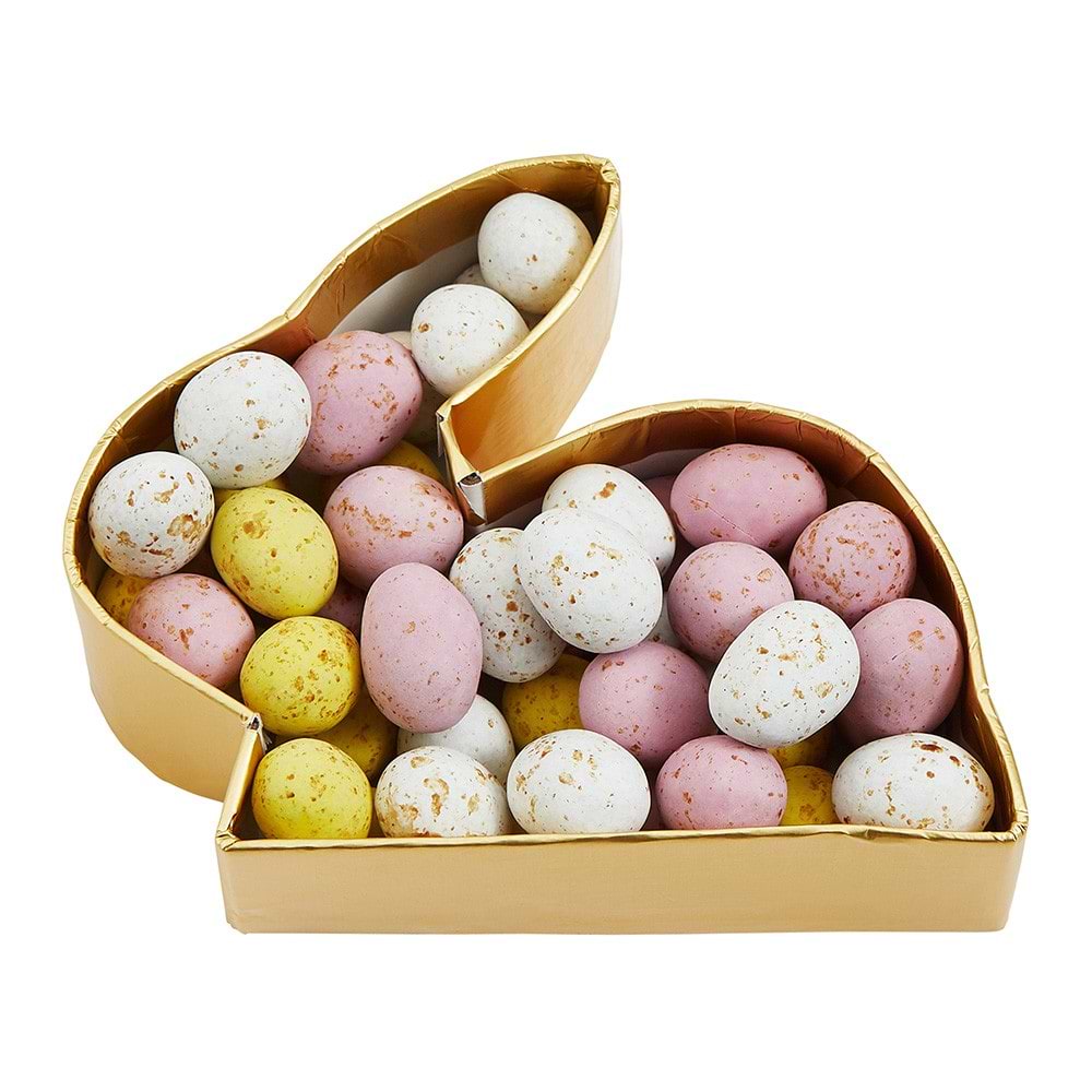 Whole Milk chocolate (sugar, cocoa Butter, whole Milk powder, cocoa mass, emulsifier (sunflower lecithin), vanilla extract), sugar, modified corn starch, colorings (titanium dioxide, anthocyanin, riboflavin), caramelized sugar.